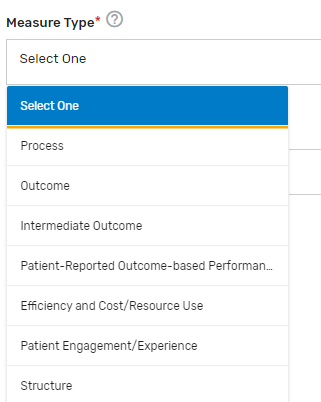 Measure Type* – Select which 1 measure type applies to the QCDR measure from the drop-down list.