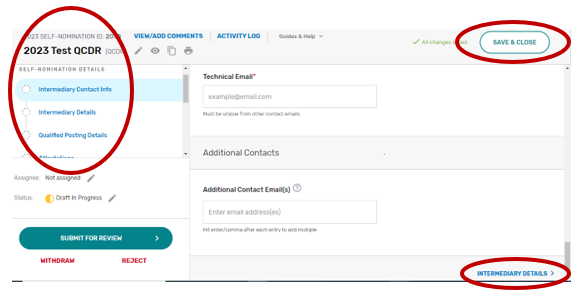 Find your intermediary name in the list on the Intermediary landing page with the Self-Nomination Form “Partially Renewed” status.