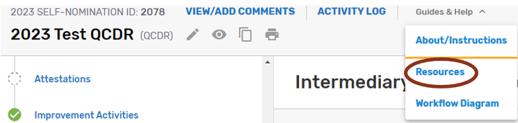 Improvement Activities tab – Intermediaries are required to select the improvement activities supported for the 2023 MIPS performance period. For more information, please see the 2022 MIPS Improvement Activities User Guide.