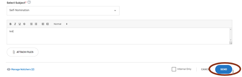 Please make sure to indicate the correct subject in the ‘Select Subject’ dropdown that coordinates with the topic. For example, if you are submitting/responding to a comment on your Self-Nomination form choose the ‘Self-Nomination’ category from the ‘Select Subject’ dropdown.