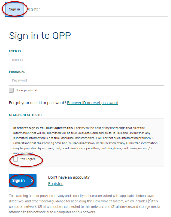 Please note that sharing HARP account credentials with other users is not permitted and is considered a security violation. Each individual user must have their own HARP account to log in to the QPP website. Unauthorized or improper use of this system is prohibited and may result in disciplinary action and/or civil and criminal penalties.