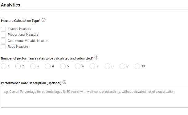 Number of performance rates to be calculated and submitted* – Indicate the number of performance rates submitted for the measure.