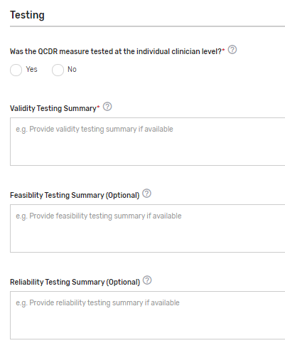 Was the QCDR measure tested at the individual clinician level? – Select “Yes” or “No” to indicate if the QCDR measure was tested at the MIPS eligible clinician level.