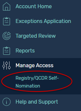 Click “Registry/QCDR Self-Nomination” under Manage Access.
