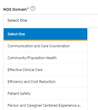 National Quality Strategy (NQS) Domain* – Select which 1 NQS domain applies to the QCDR measure from the drop-down list.