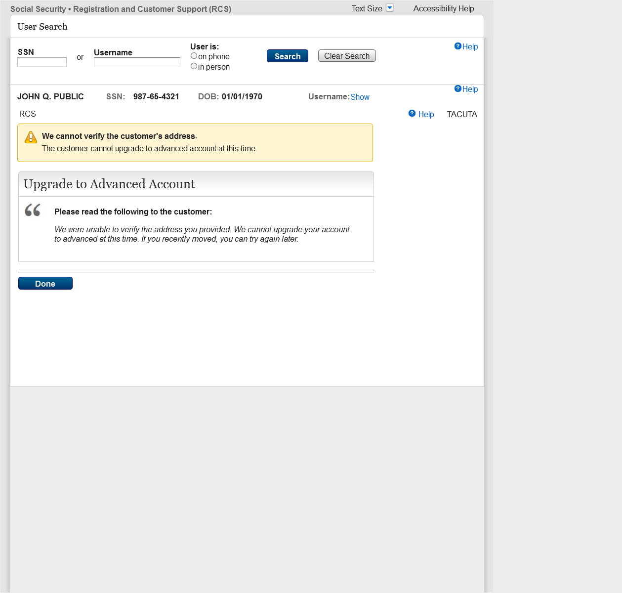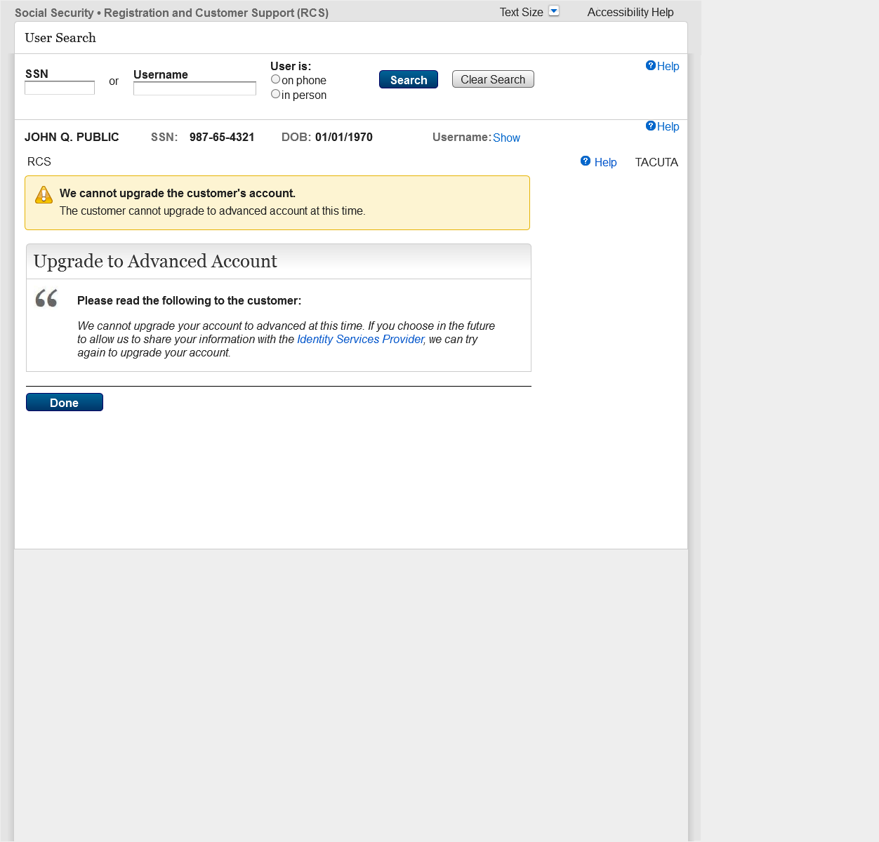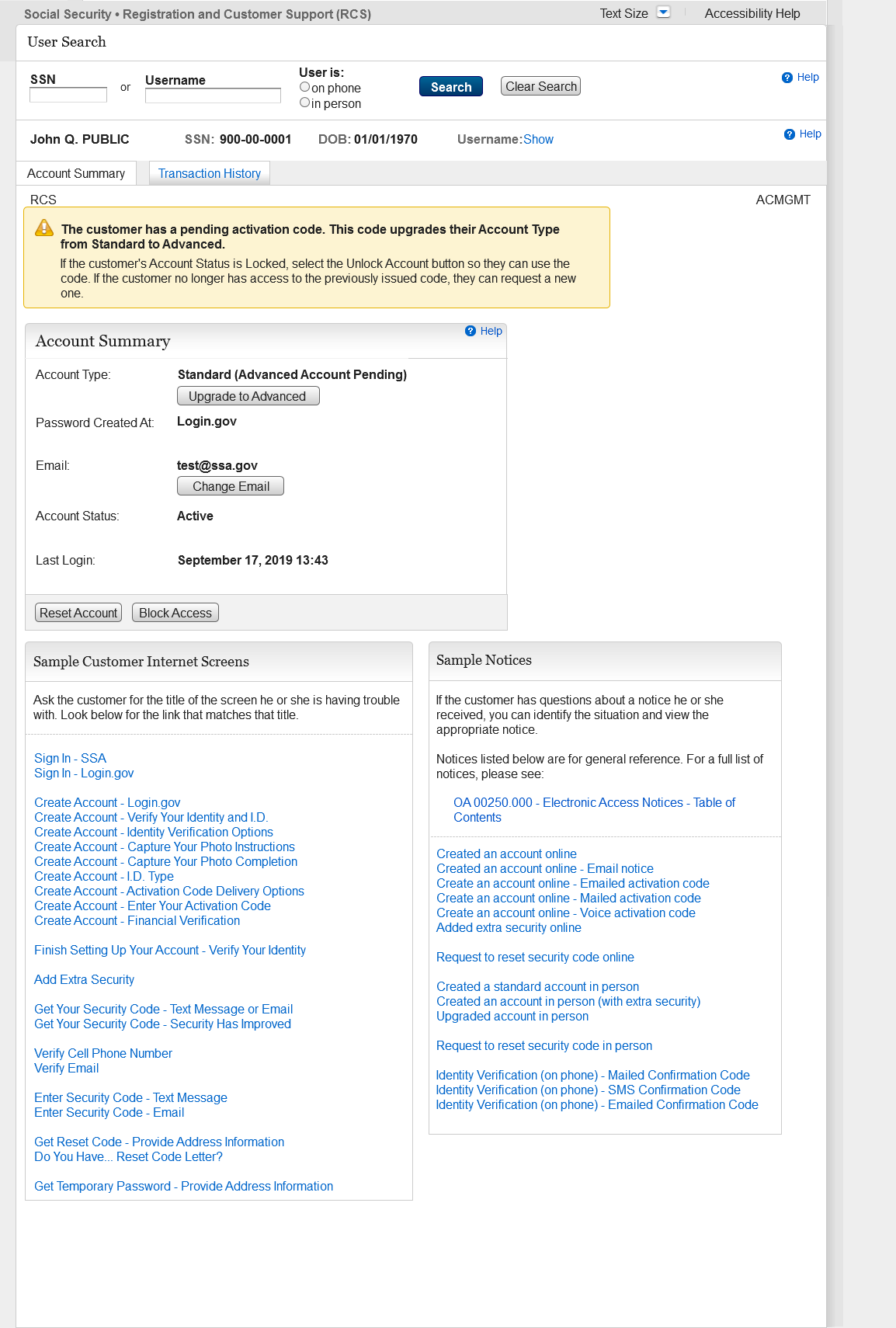 Added a label (Advanced Account Pending) to the Account Type field that displays when a customer has an upgrade code with account locked.