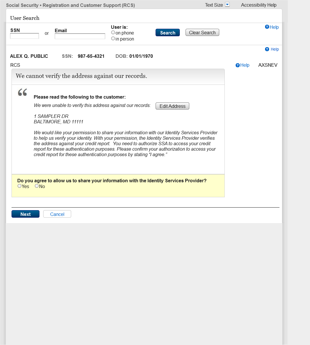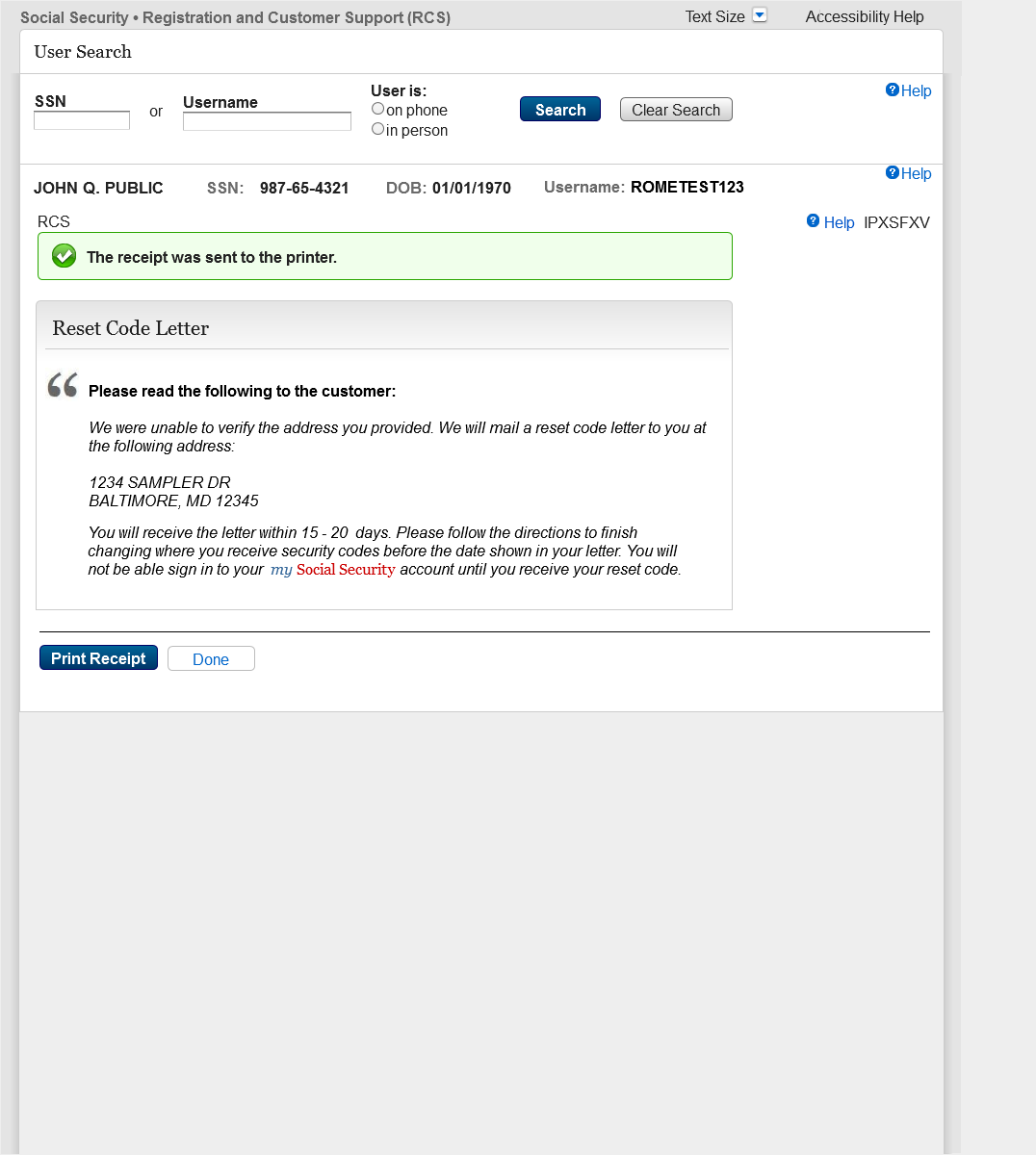 2.15 IPXSFXV (In Person Extra Security Failed External Address Verification) mail Reset Code 31