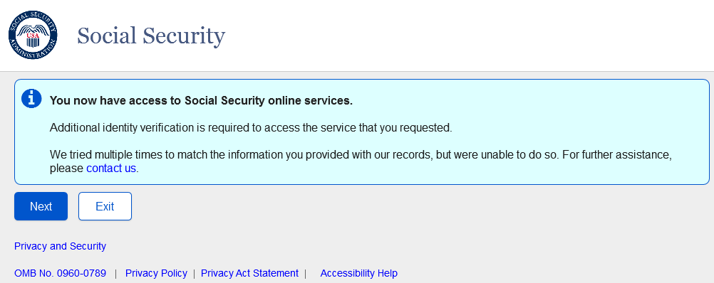 Error message when information does not verify.
