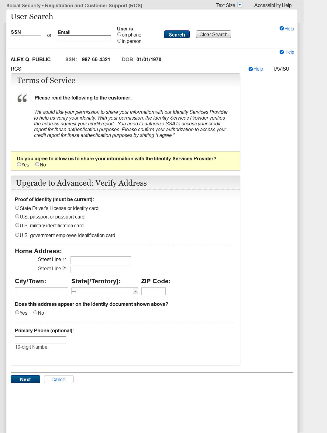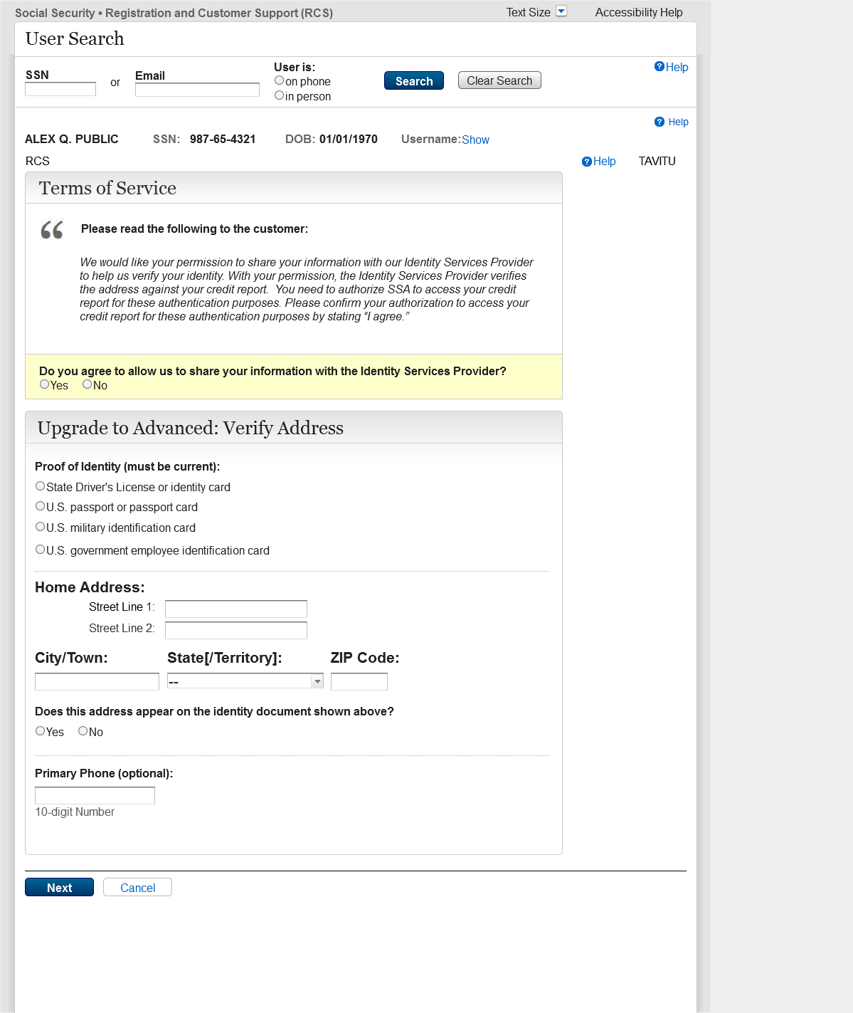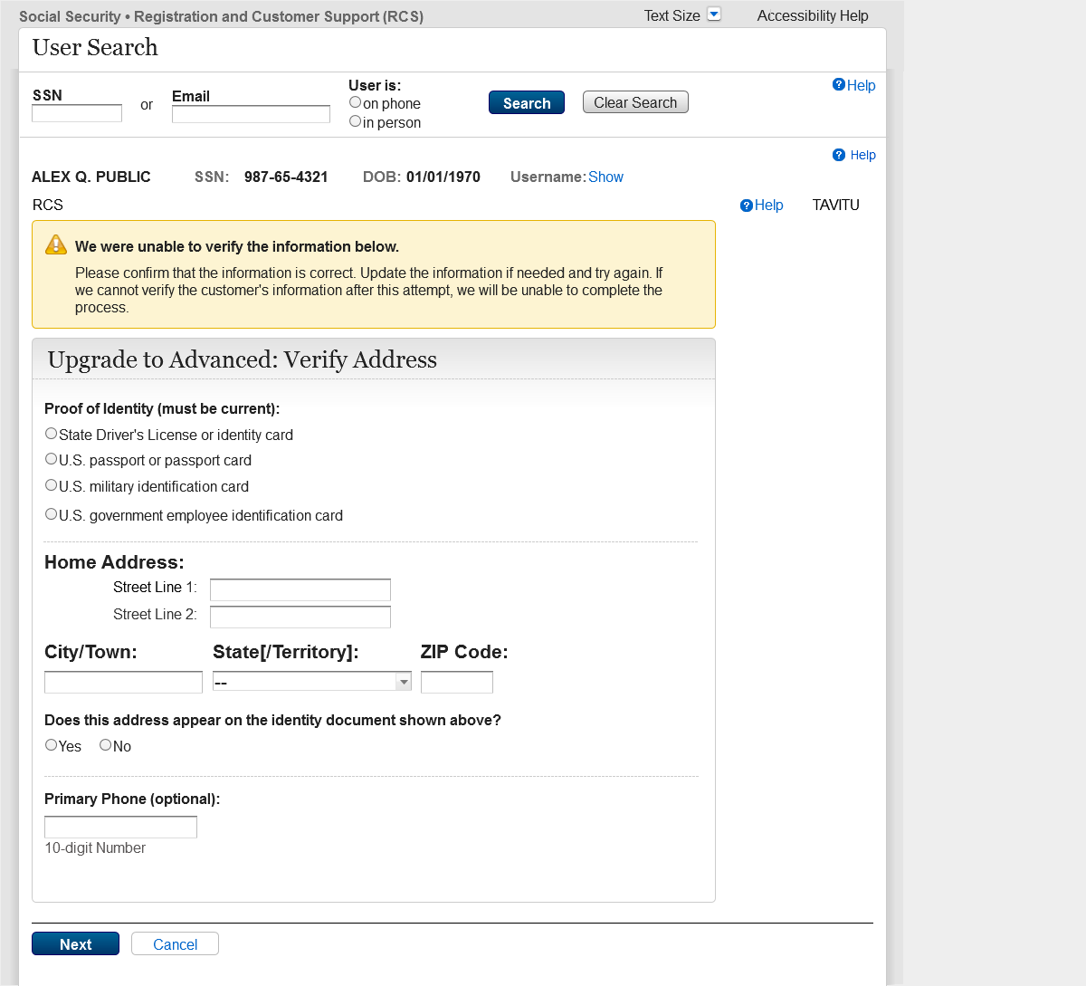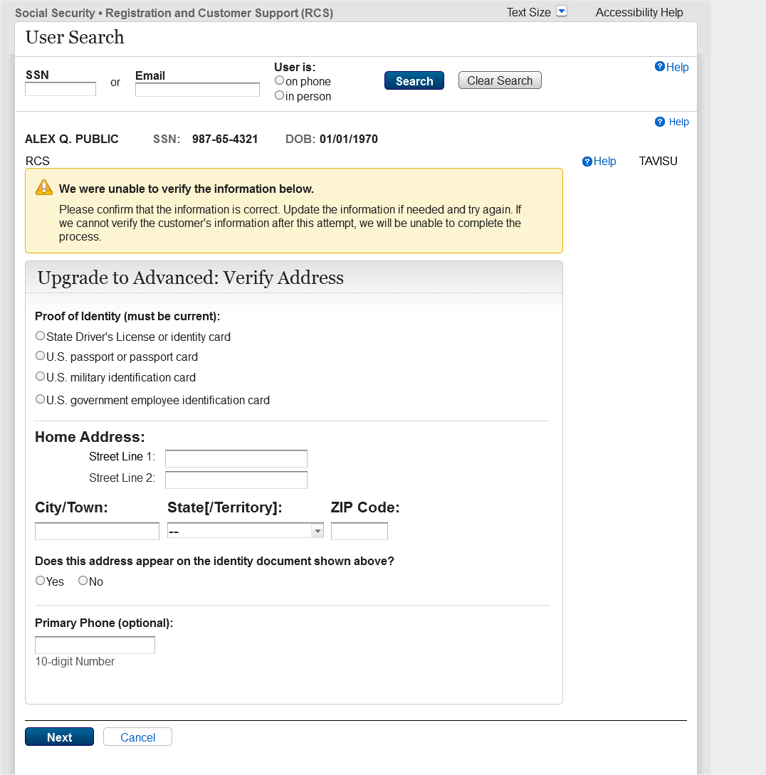 The Screen Name has changed from TAVISU to TAVITU (Tiered Authentication – Verify Identity to Upgrade).