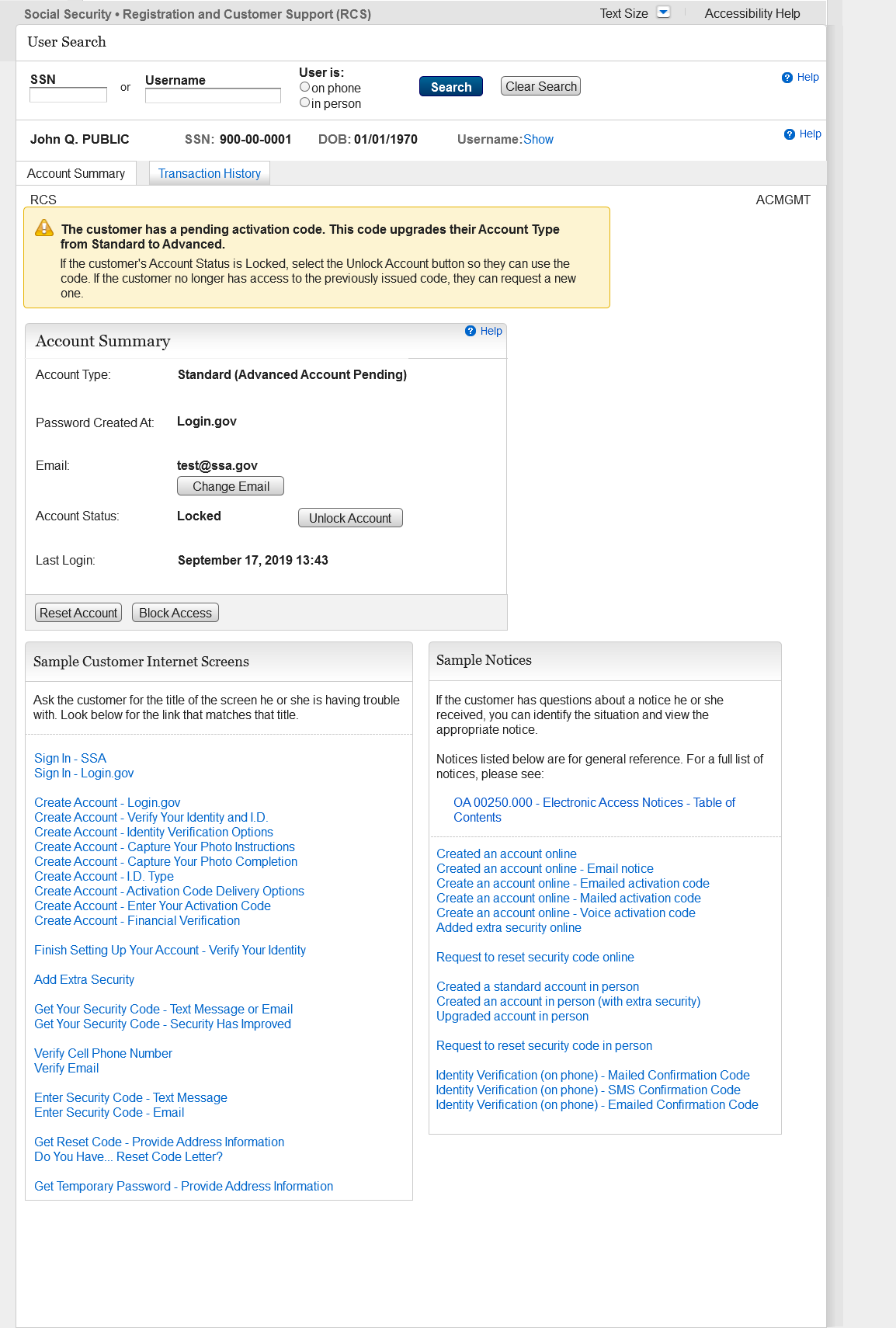 Removed the “Add Extra Security" button from the ACMGMT screen for customers with a locked legacy account, so that technicians will unlock the accounts prior to issuing an activation code.