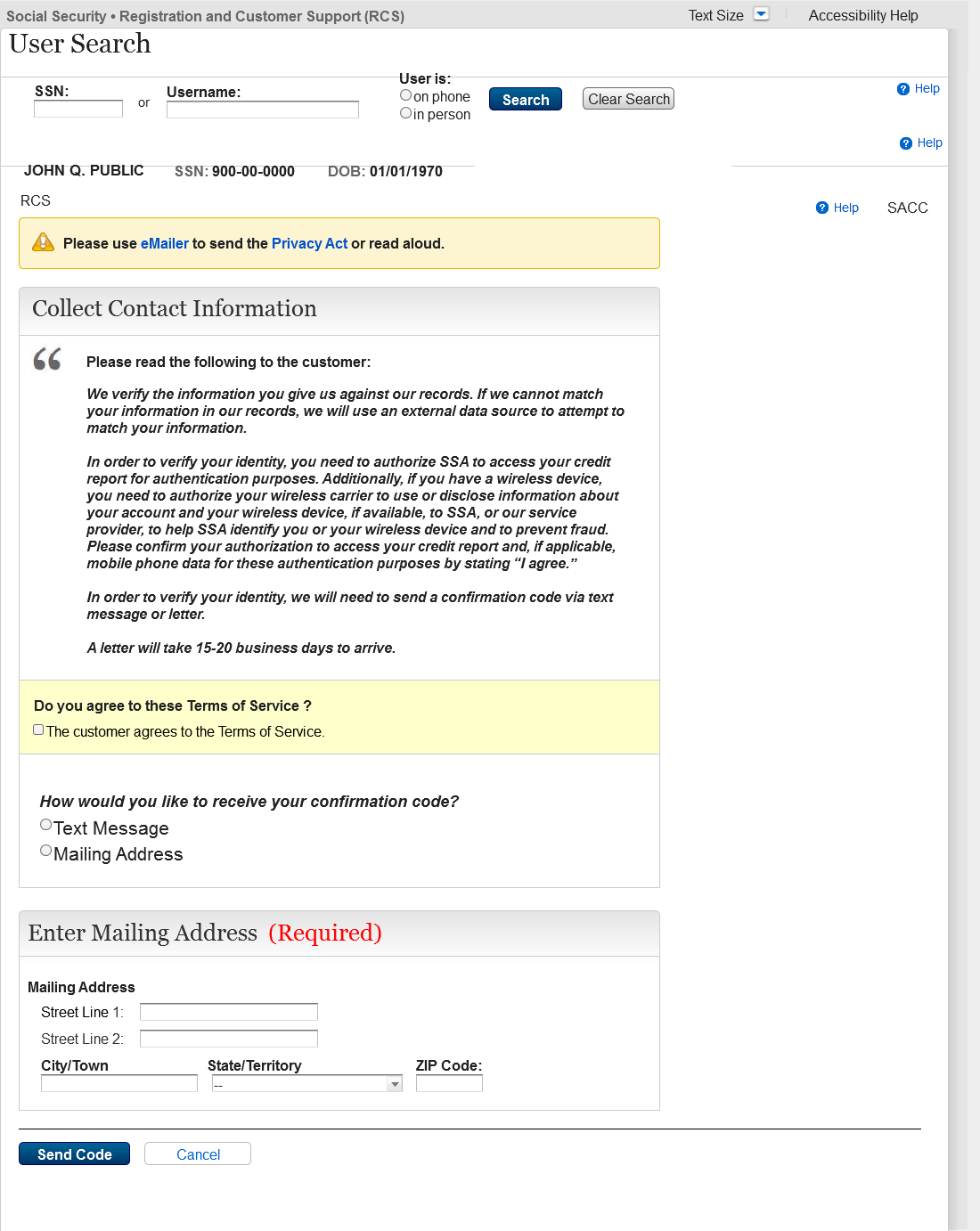 Add the ability to issue an activation code and navigate the technician to the TAMAC if only the physical address verifies and the address is not on the ID.