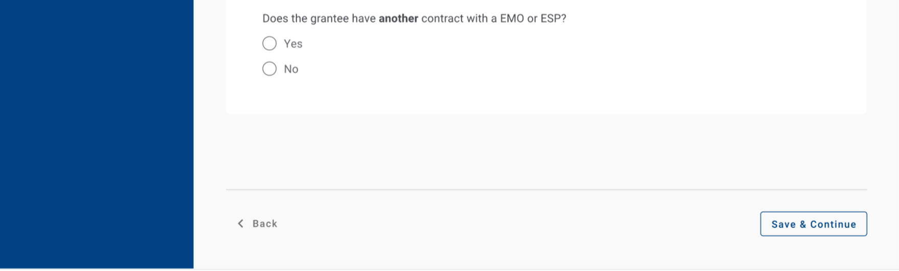 If Grantees select the third option, they are prompted to select the applicable options form the dropdown.
