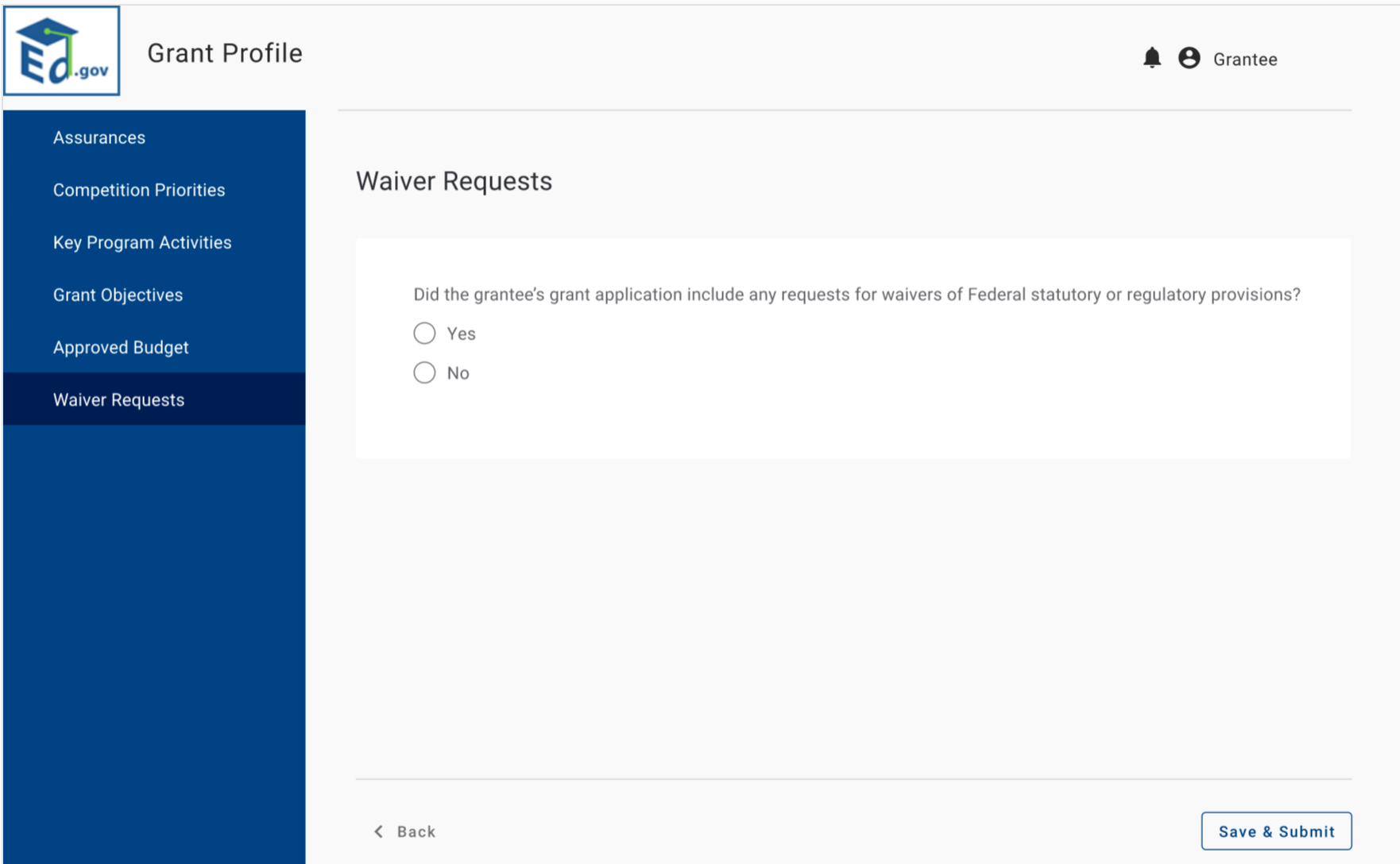 Grantees select Yes, then the following questions appear.
