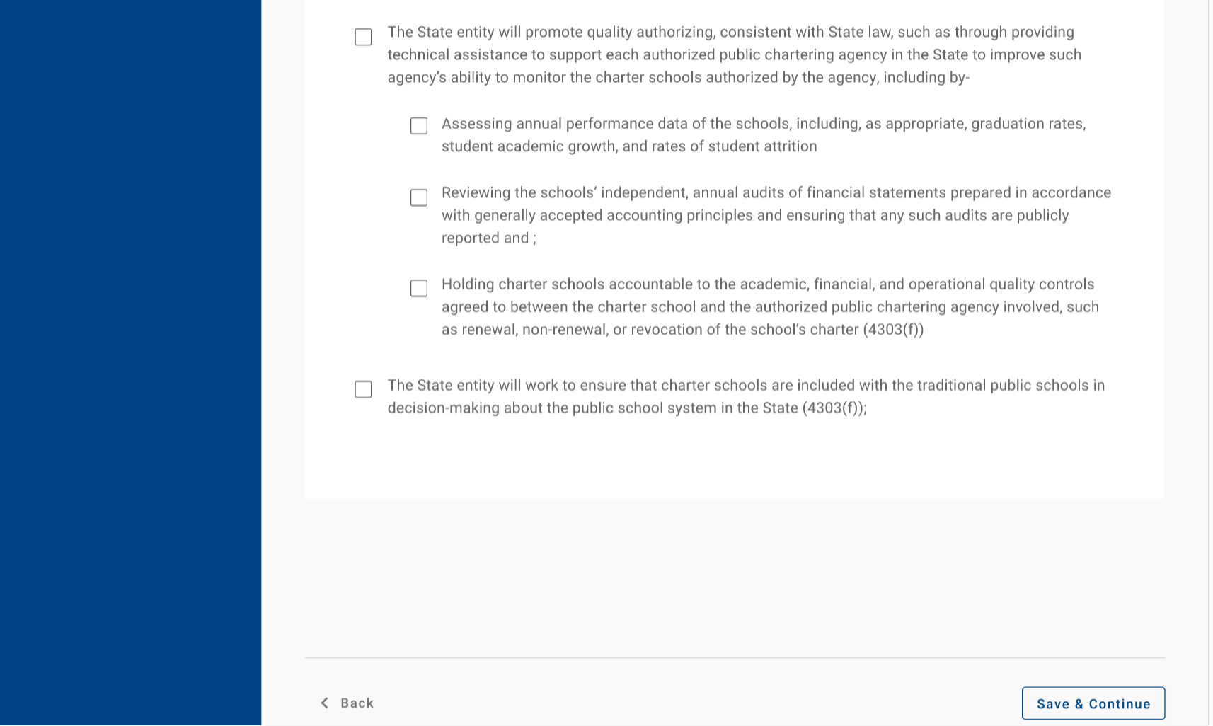 As CSP grant recipients, CMO Grantees have to follow certain Federal and U.S. Department of Education (ED) laws and regulations, as well as adhere to the project objectives and measures the Grantee outlined in their grant applications, such as assurances, competitive priorities, key program activities, grant objectives, approved budget and waiver requests. As part of this requirement, CSP is requiring the Grantees enter key grant and project information at the time of award. This baseline information will be input once, and used to benchmark additional data/reporting that is required each Spring and fall as part of the APR and school/subgrant data collection requirements.