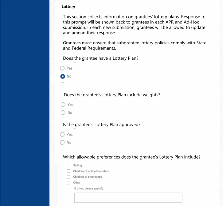 On the next grant objectives page, Grantees will upload their lottery policy.