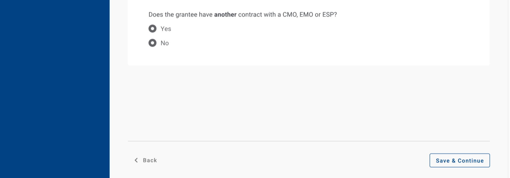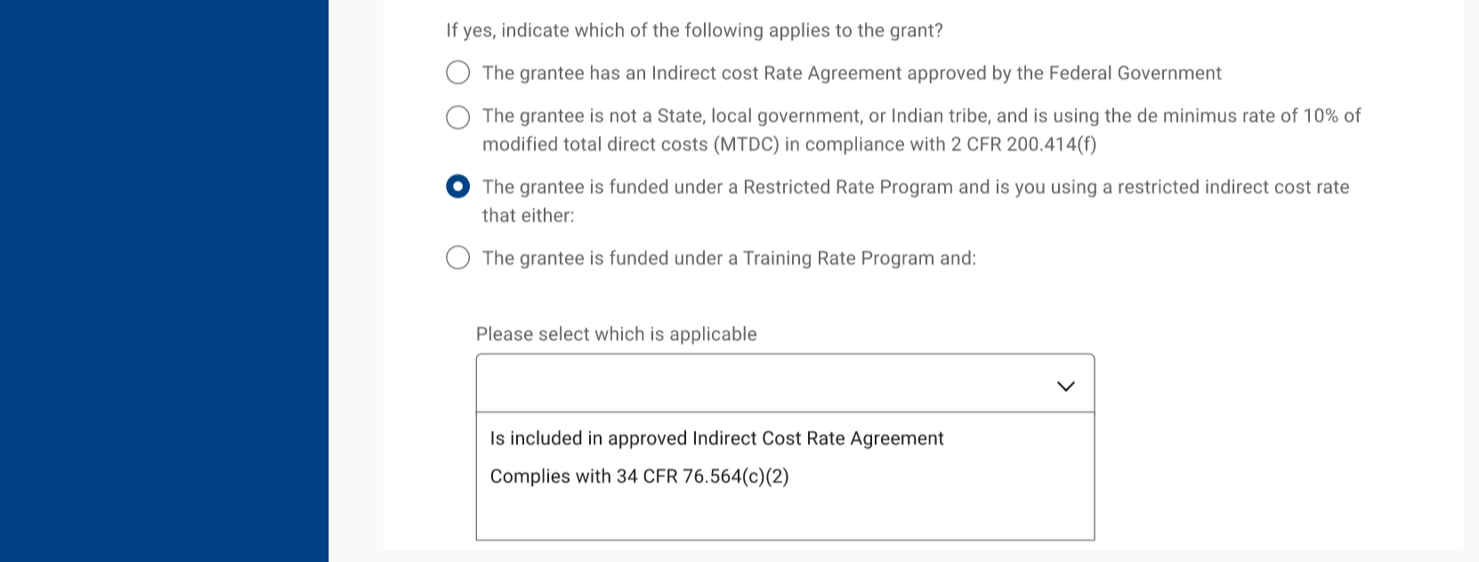 If Grantee select the third option, they are prompted to select the applicable options from the dropdown.