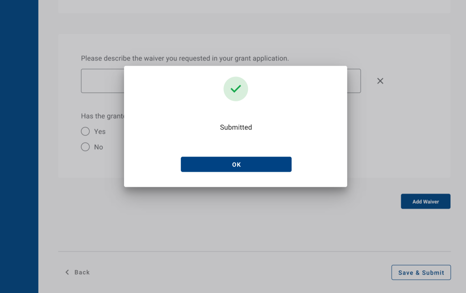 If Grantees select that their closure plans have not been developed, they are prompted to explain and provide a date of closure availability.