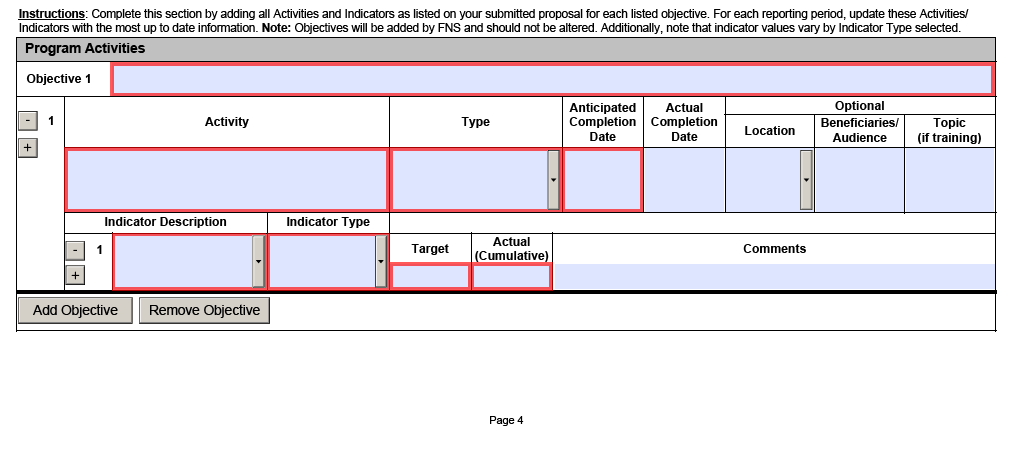 Below is a list of the Program Objectives. As noted in the section below, within “Activities/Indicators Tracker”, proposed activities should be clearly aligned to these Objectives and their associated Activities and Indicators.