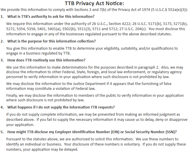 Tax-Free Registration (Equivalent to TTB F 5300.28)