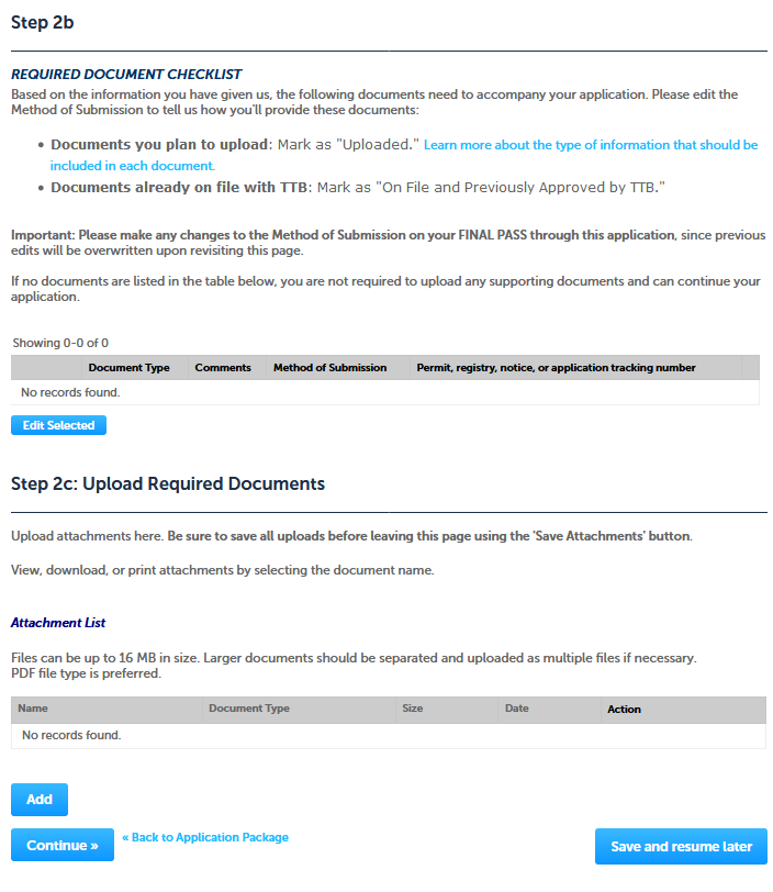 After editing and/or confirming previous information, respondenst then may select “Start” to immediately complete the application package, or may select “Save and resume later” to complete the application package later:
