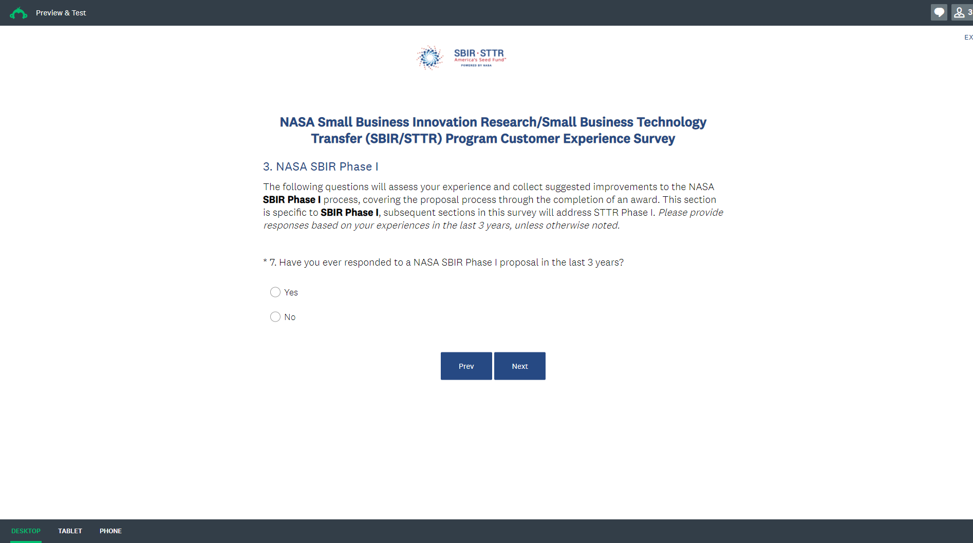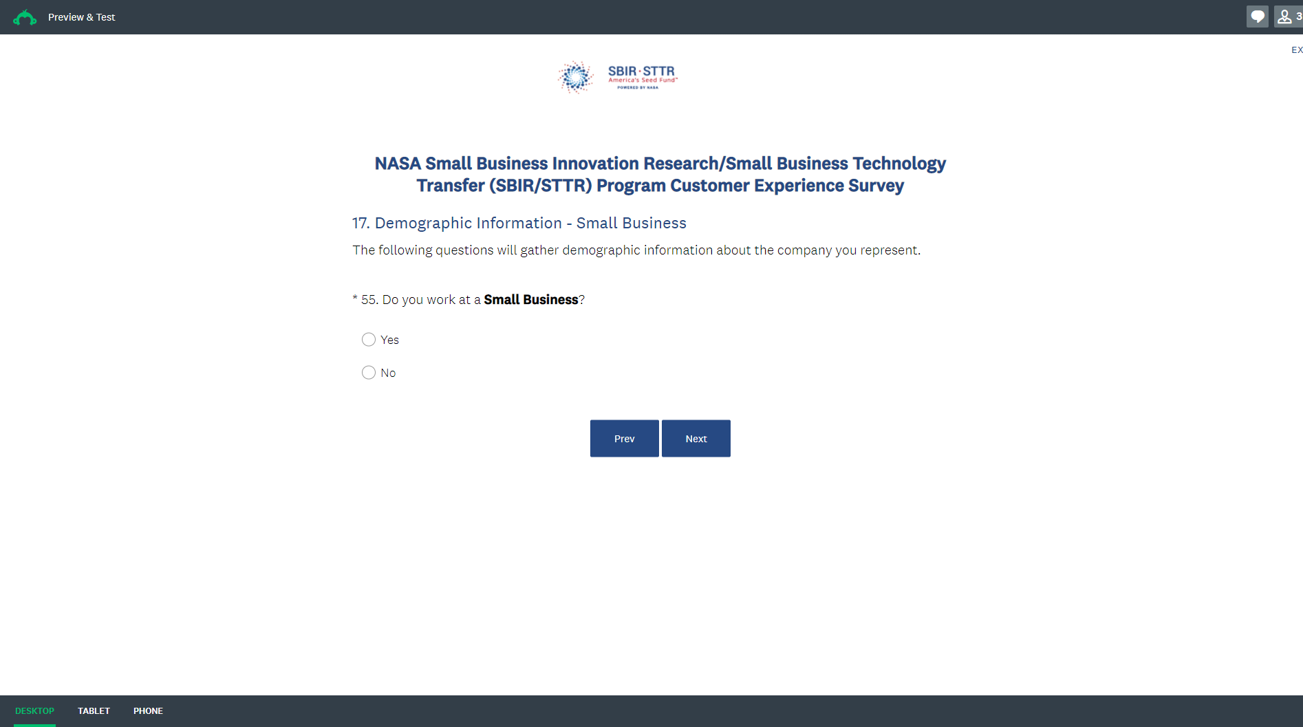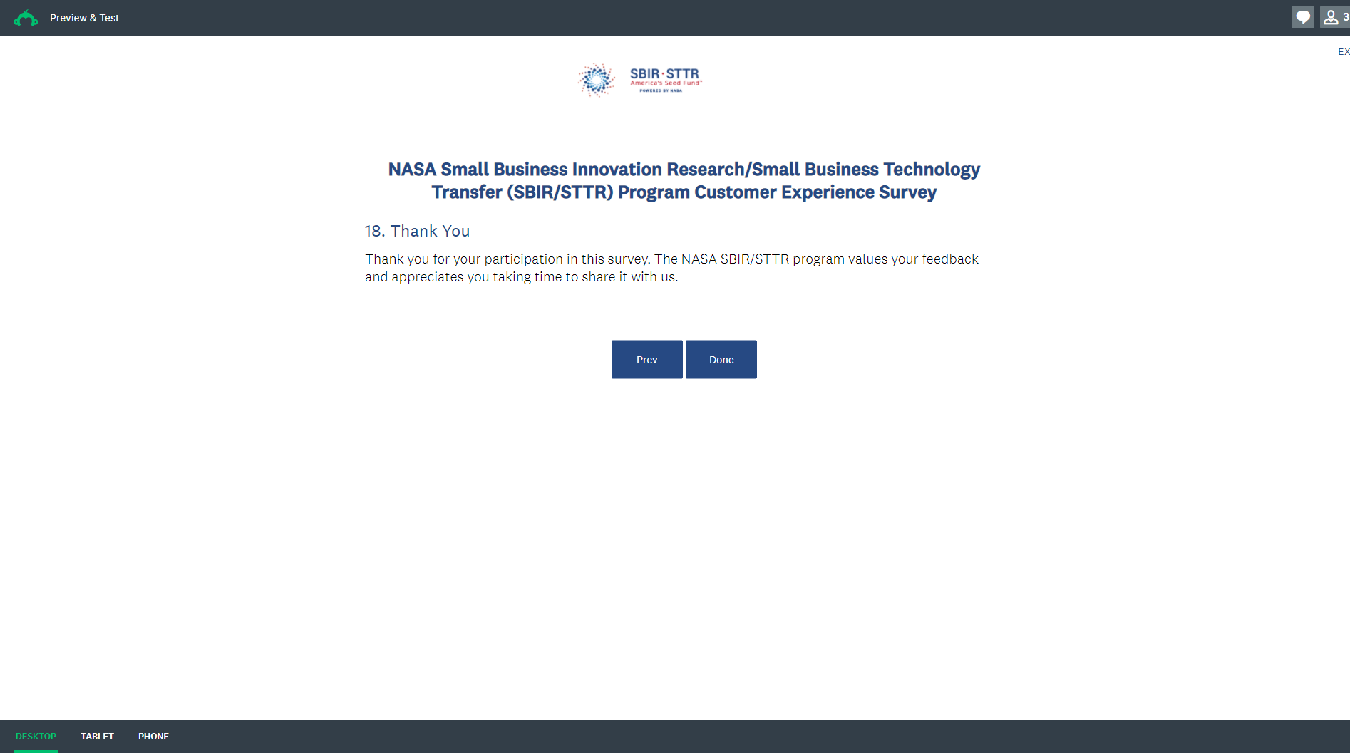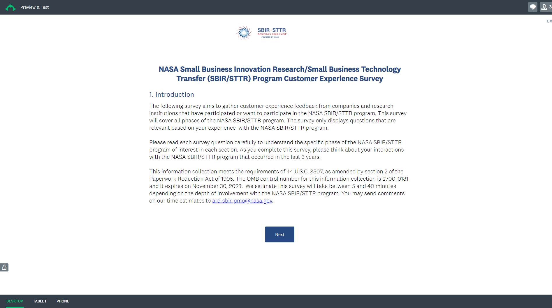 NASA Small Business Innovation Research/Small Business Technology Transfer (SBIR/STTR) Program Customer Experience Survey