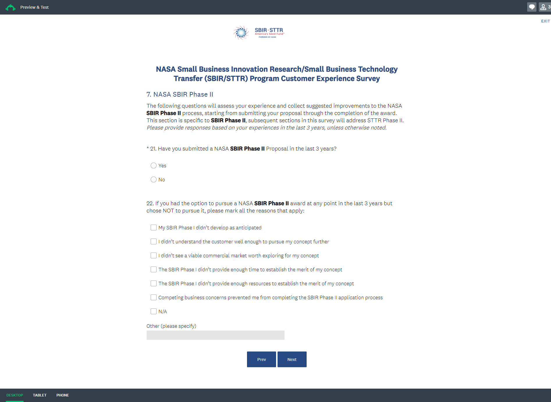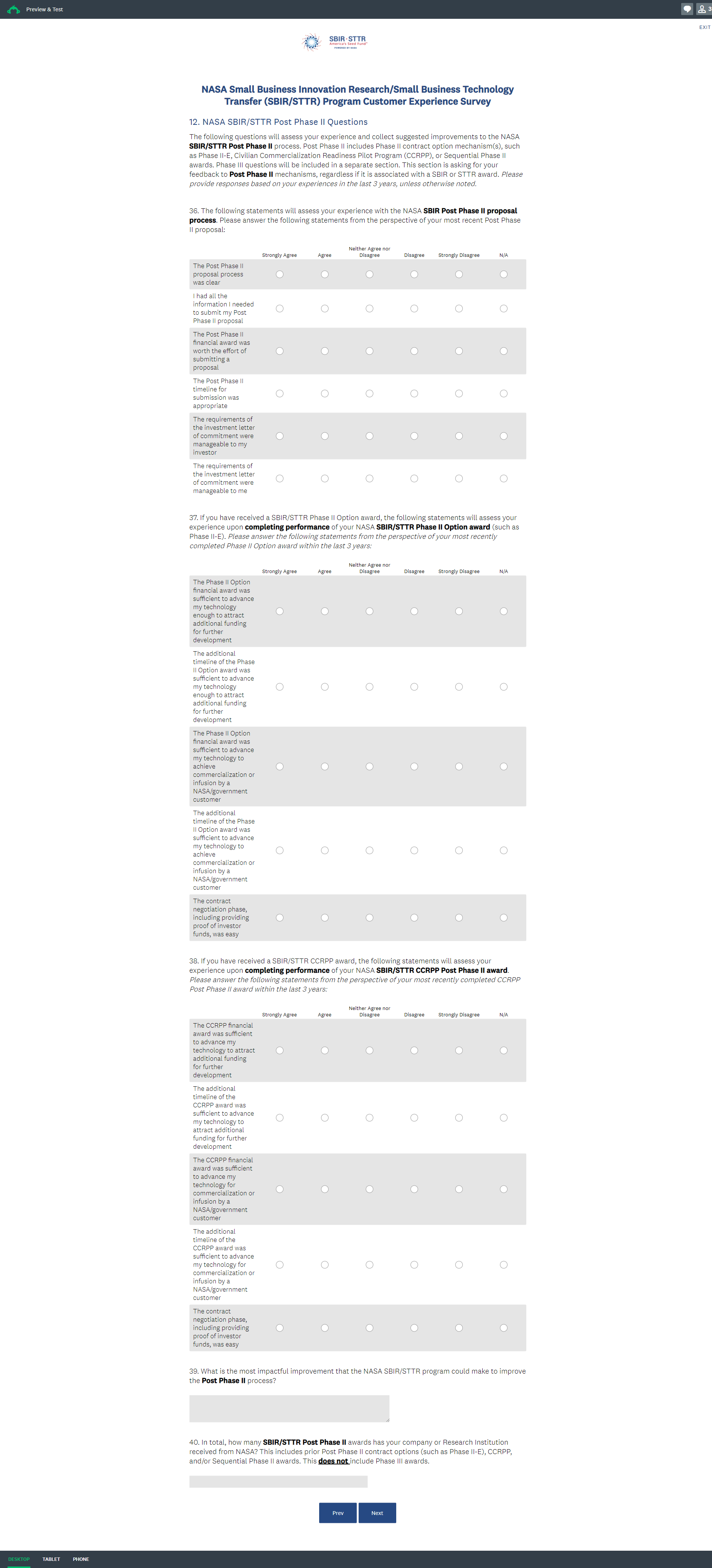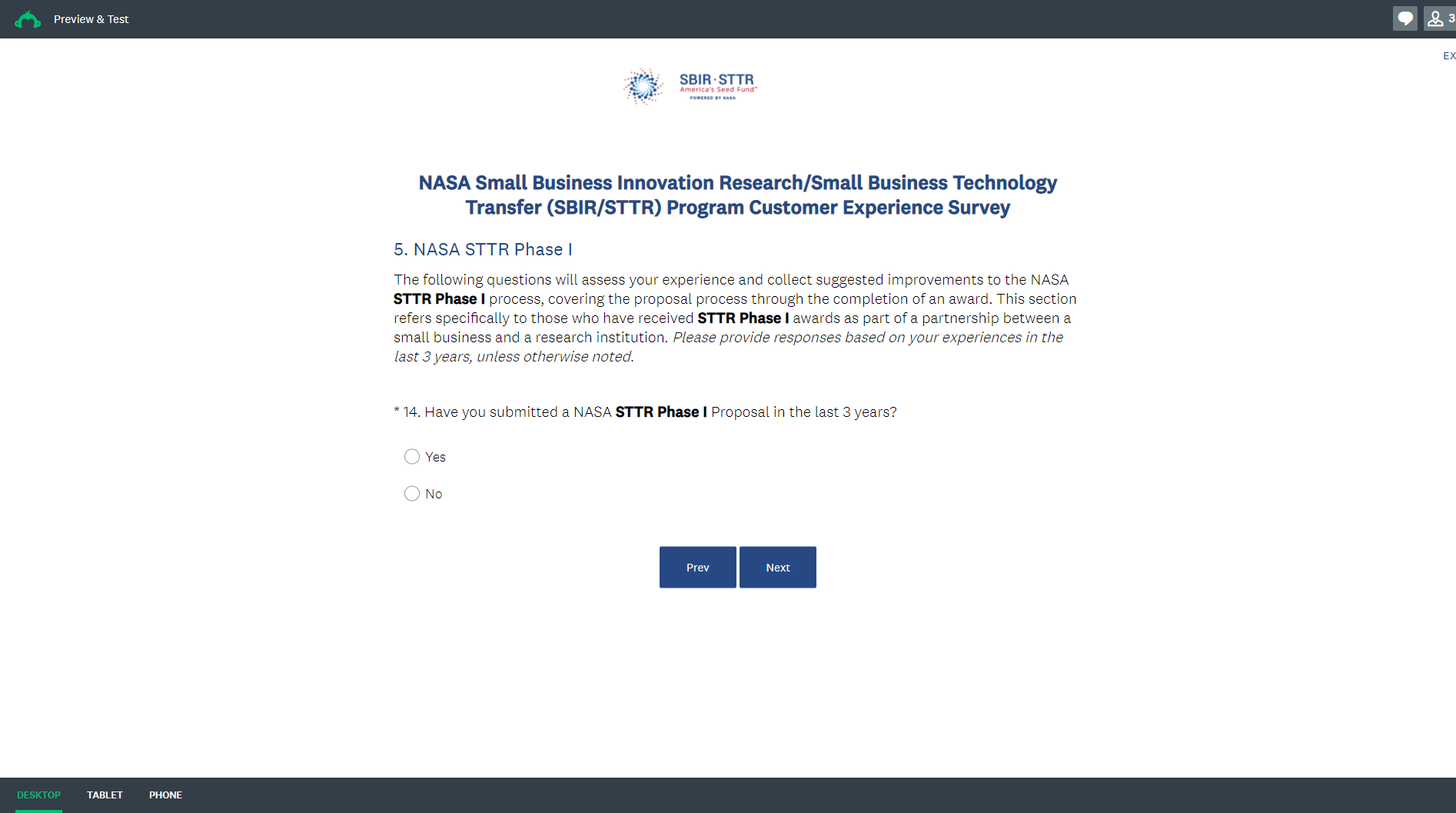 NASA Small Business Innovation Research/Small Business Technology Transfer (SBIR/STTR) Program Customer Experience Survey