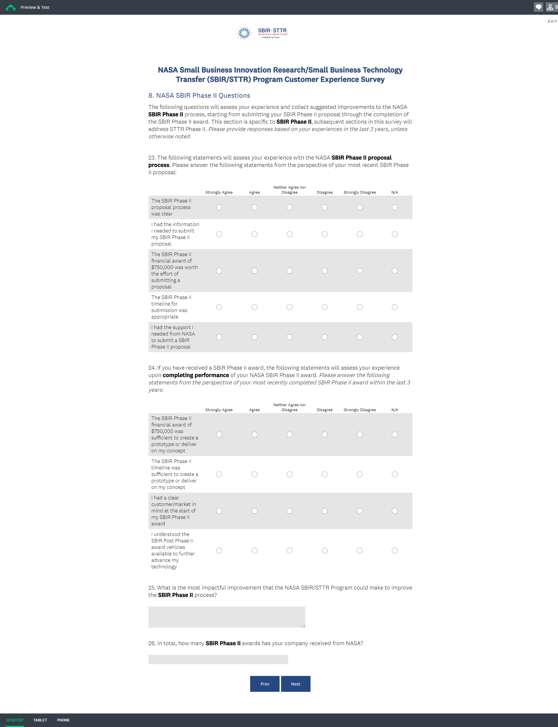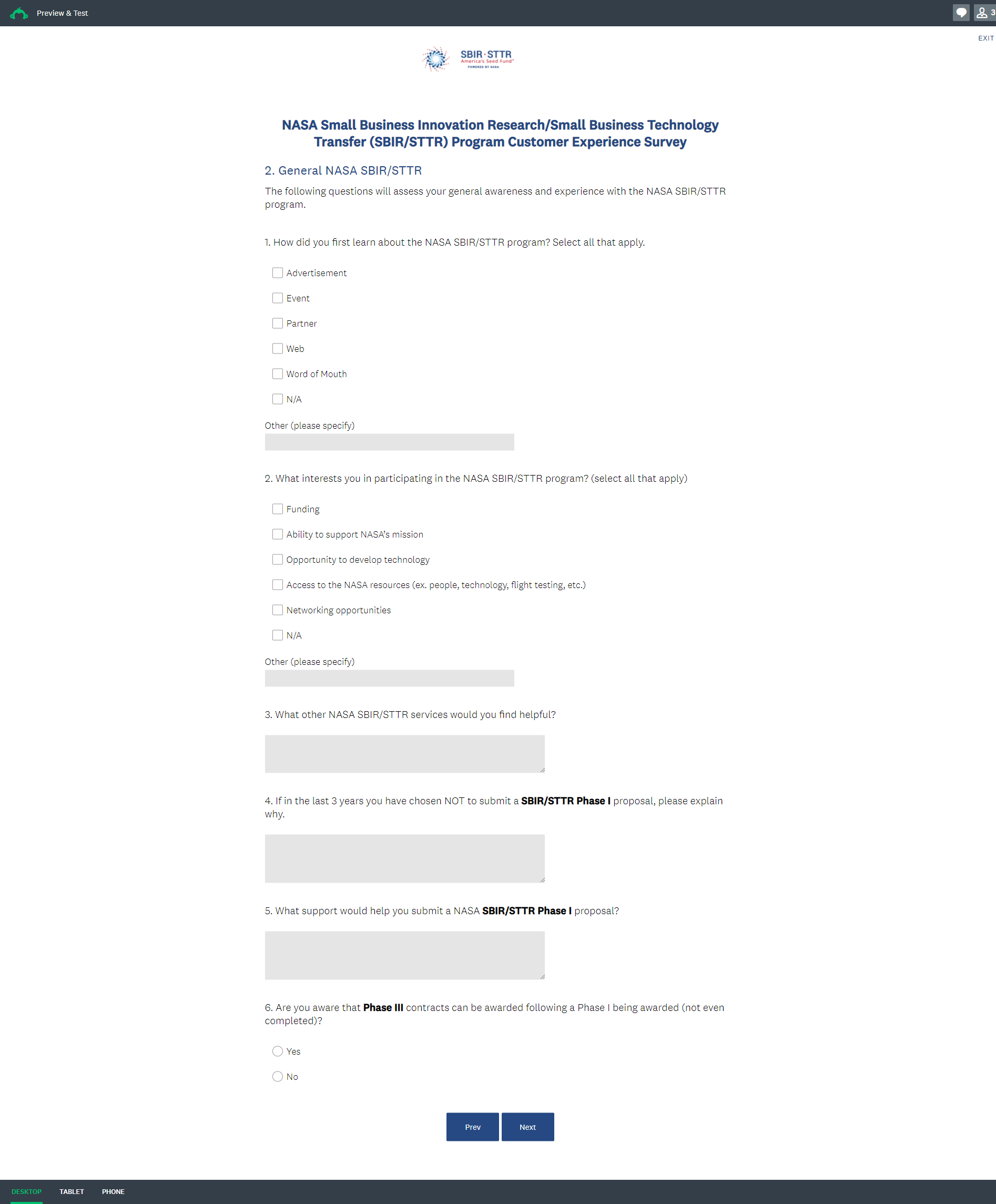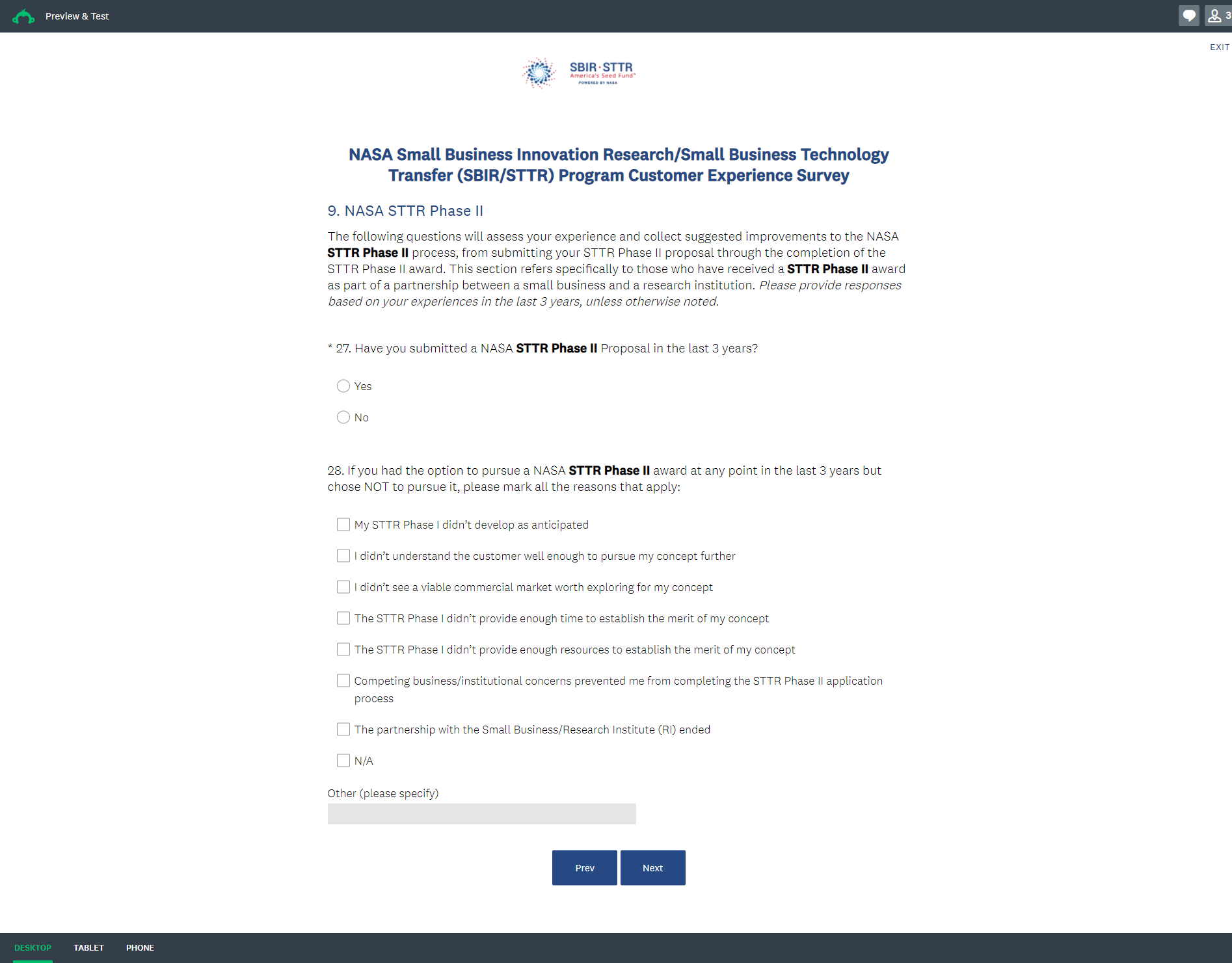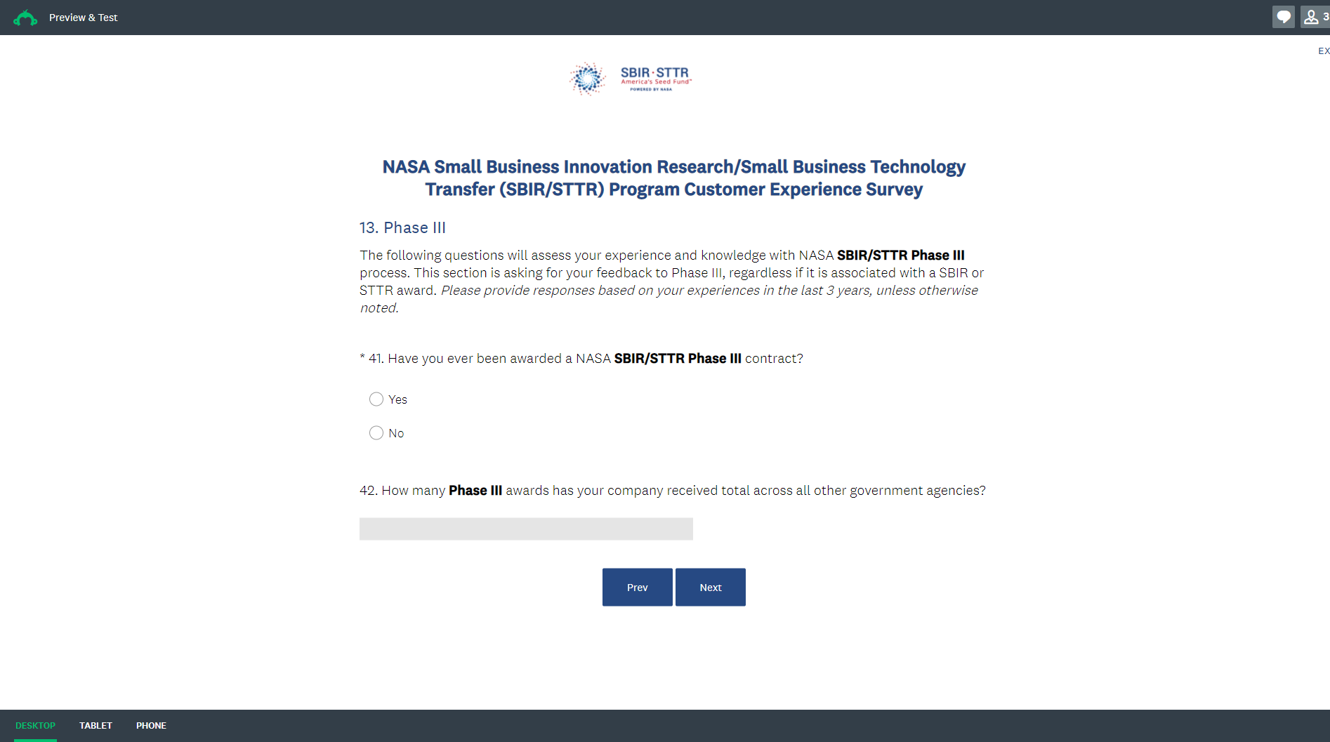 NASA Small Business Innovation Research/Small Business Technology Transfer (SBIR/STTR) Program Customer Experience Survey