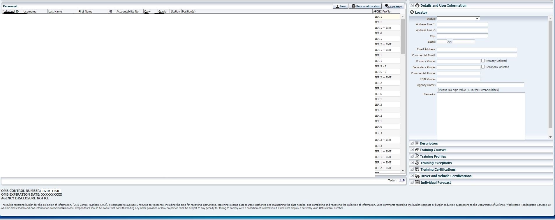 Fire Emergency Services - Information Management System (FES-IMS) Personnel Information