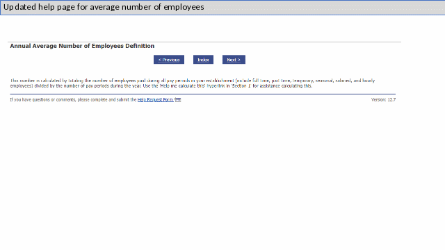 Instructions are updated on the Help Page explaining how to determine the annual average number of employees.