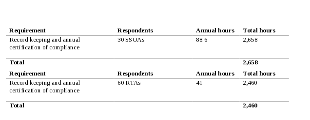 The proposed rule would add information collection burden associated additional recordkeeping and reporting requirements and new refresher training requirements. There are 95 annual respondents (SSOAs and RTAs) that provide information to FTA related to the PTSCTP. The table below indicates the hours estimated to be incurred on an annual basis with the proposed changes.