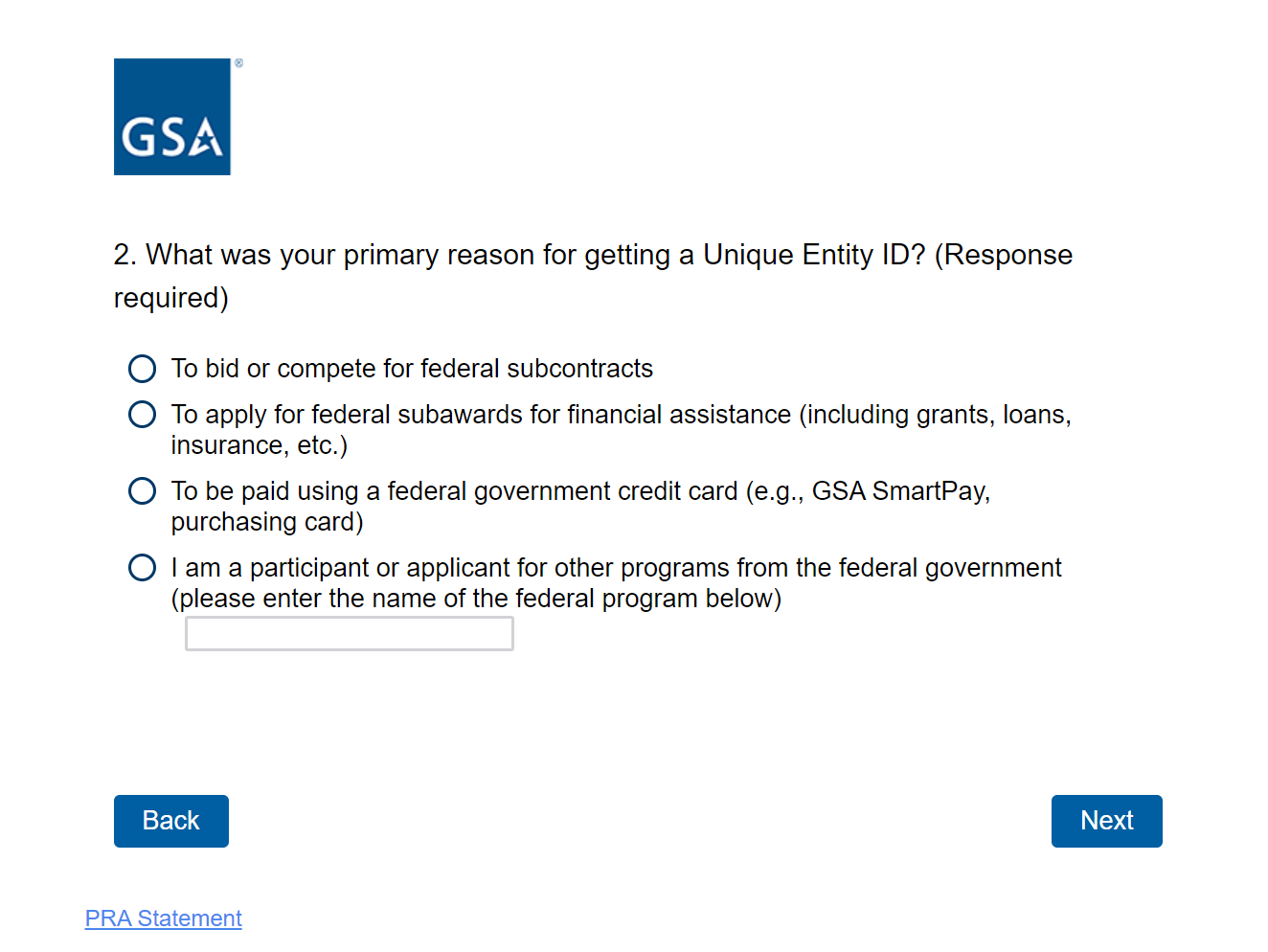 Screenshots of SAM.gov UEI-Only Motivation Survey