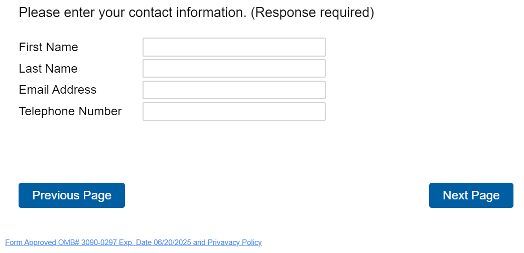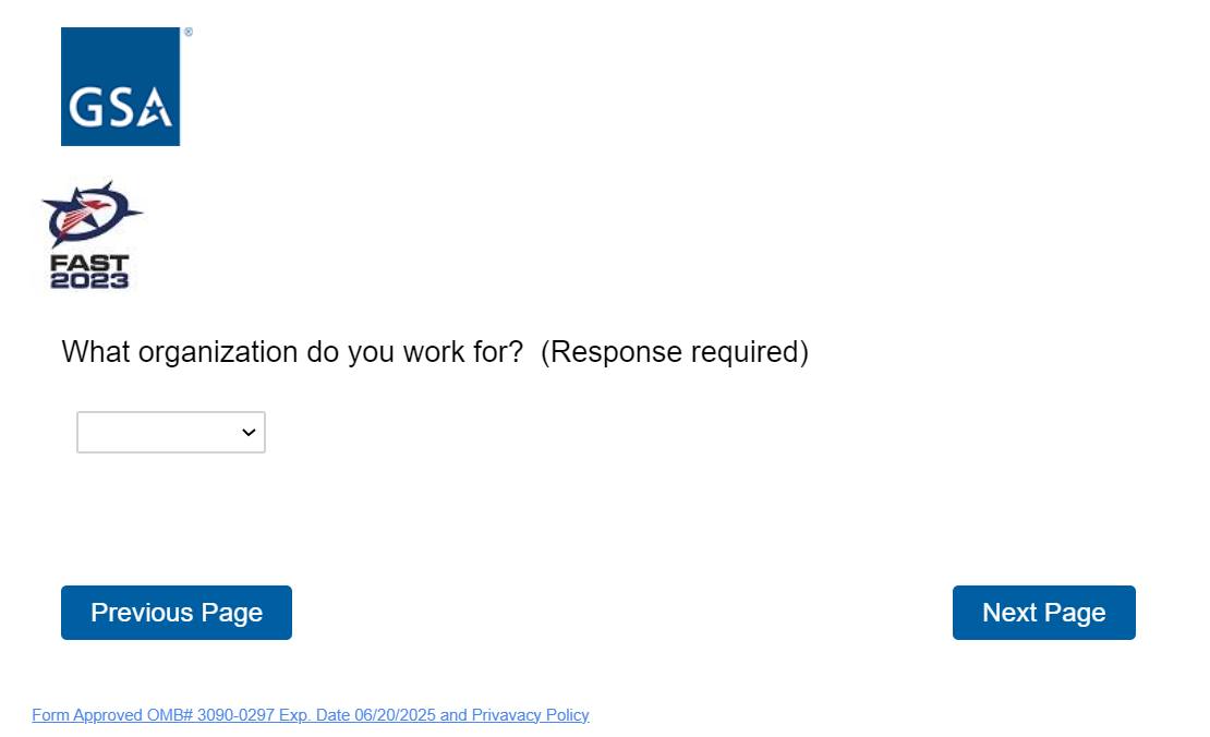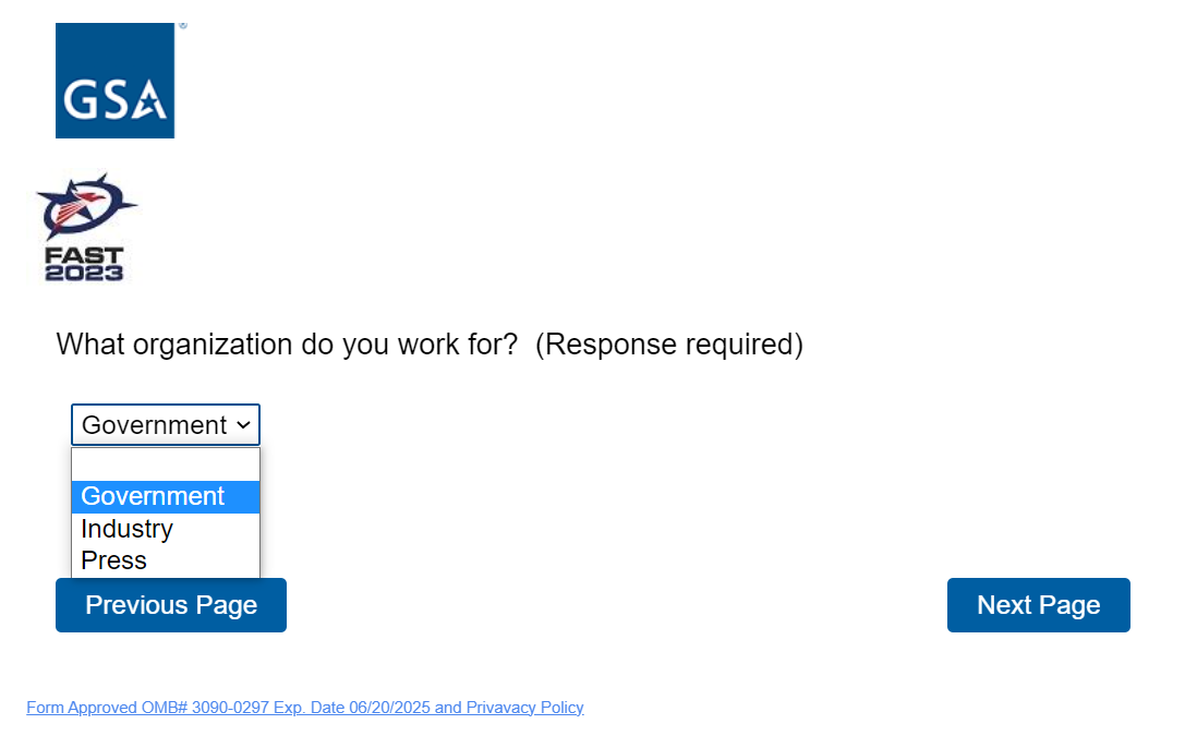 If the respondent selects “Government”, it will bring up a long list of agency names and components for them to choose from