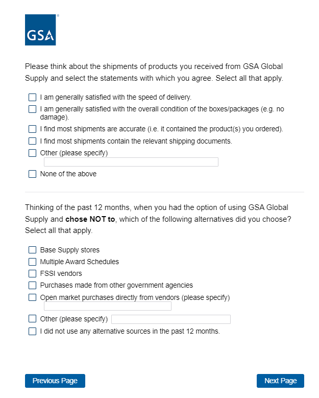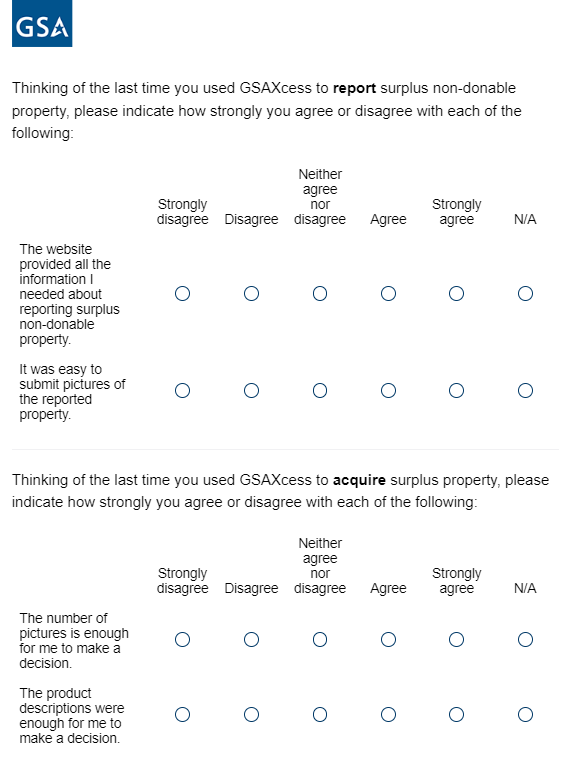 If response to first question in 3a or 3c is ‘I used an alternate disposal or acquisition solution’ or ‘Agency guidance is to use a different disposal or acquisition solution,’ following question appears in same page