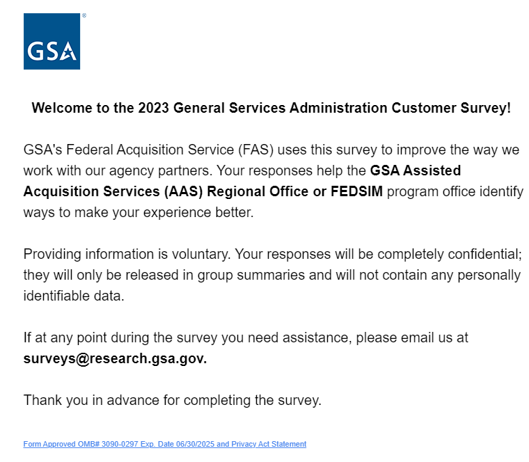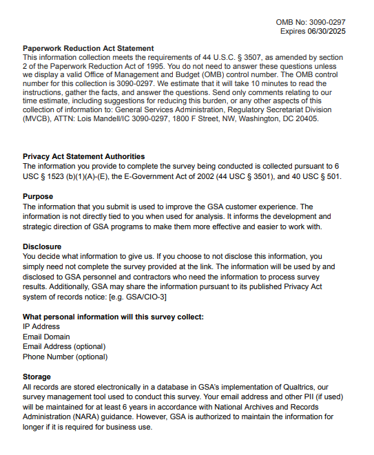 Link at the bottom of the above page goes to a pdf displaying the PRA statement and a GSA Privacy Act Statement. See next page for screenshot.