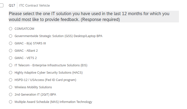 For ITC respondents, the response to the question above becomes the value for ‘Program Office’ for the rest of the survey.