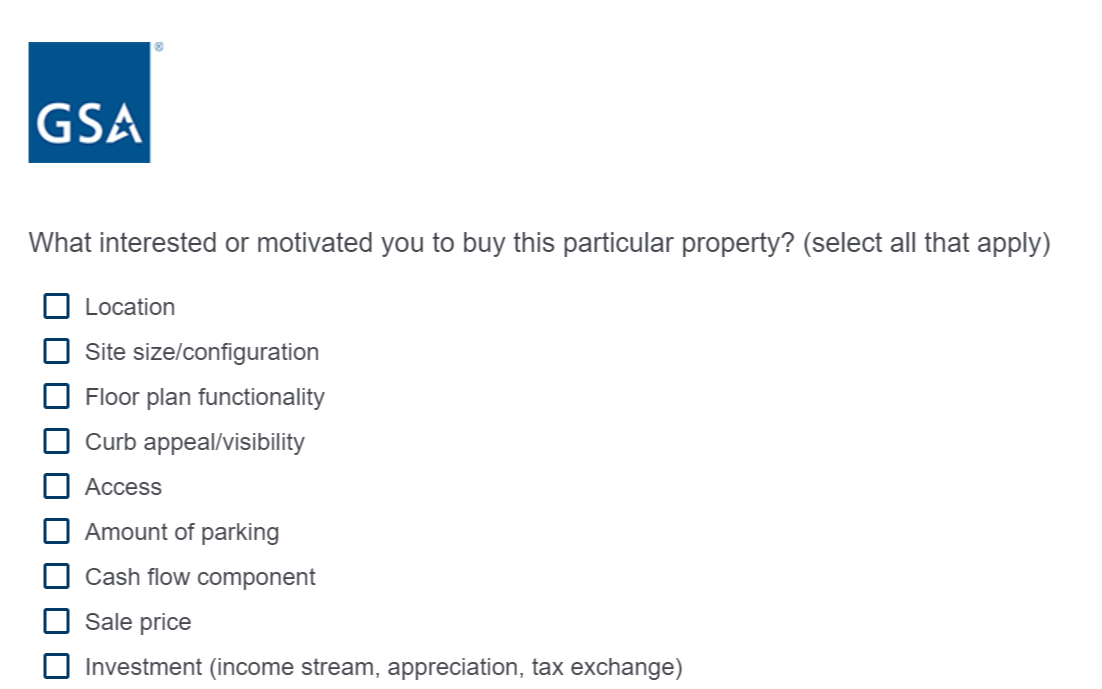 If the respondent selects yes, the below question will appear. If the respondent selects no, it will skip to “What interested or motivated you to buy this particular property?