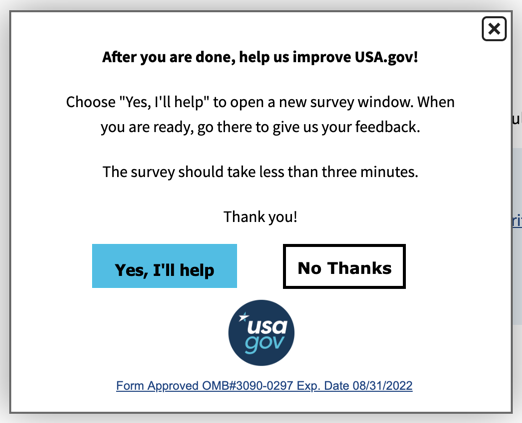 TITLE OF INFORMATION COLLECTION: USA.gov Website Customer Satisfaction Feedback Surveys