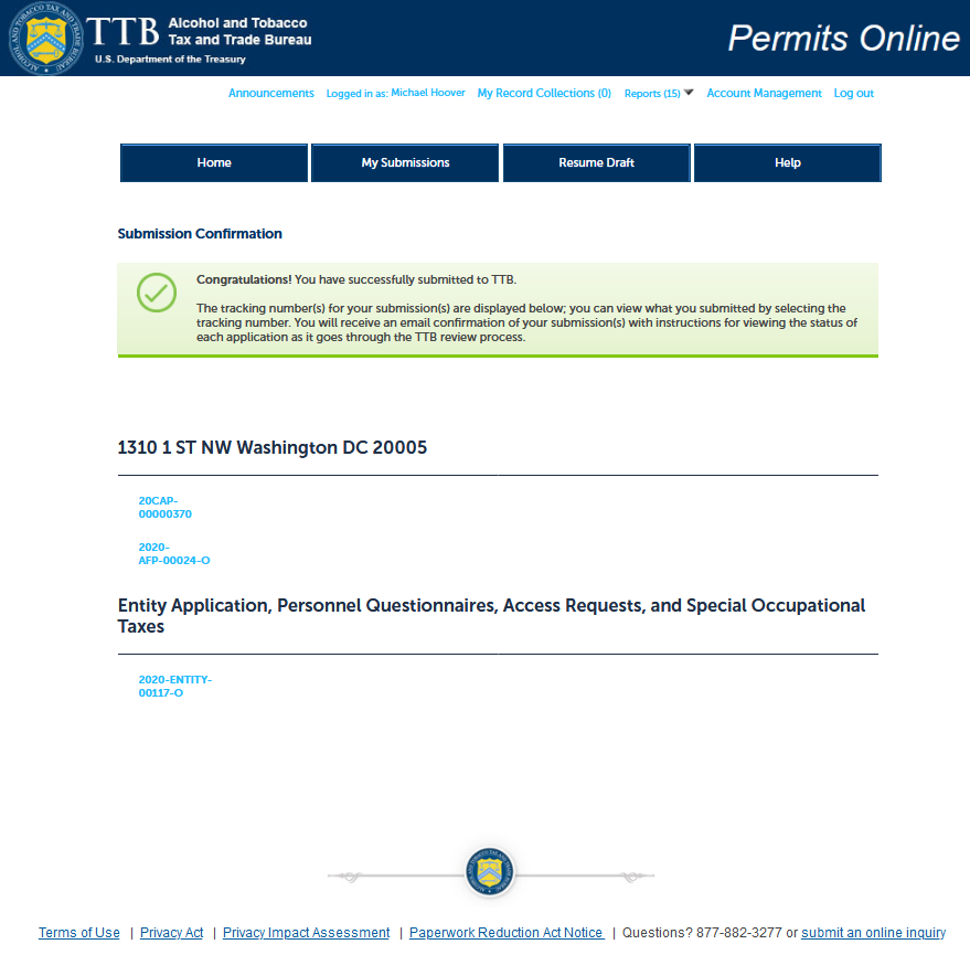 I understand that if I fail to supply the information requested TTB may delay or deny the issuance of the permit. I understand that TTB is asking for my Employer Identification Number and/or my Social Security Number for identification purposes. If I do not supply the numbers, I understand my application may be delayed.