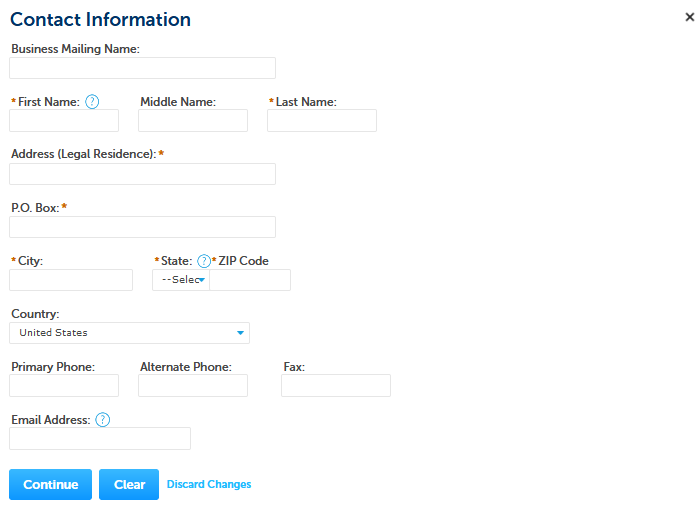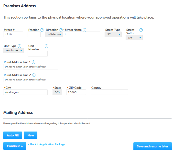Application for Alcohol Fuel Plant (Small, Medium, or Large), Step 1 – Mailing Address Screens: