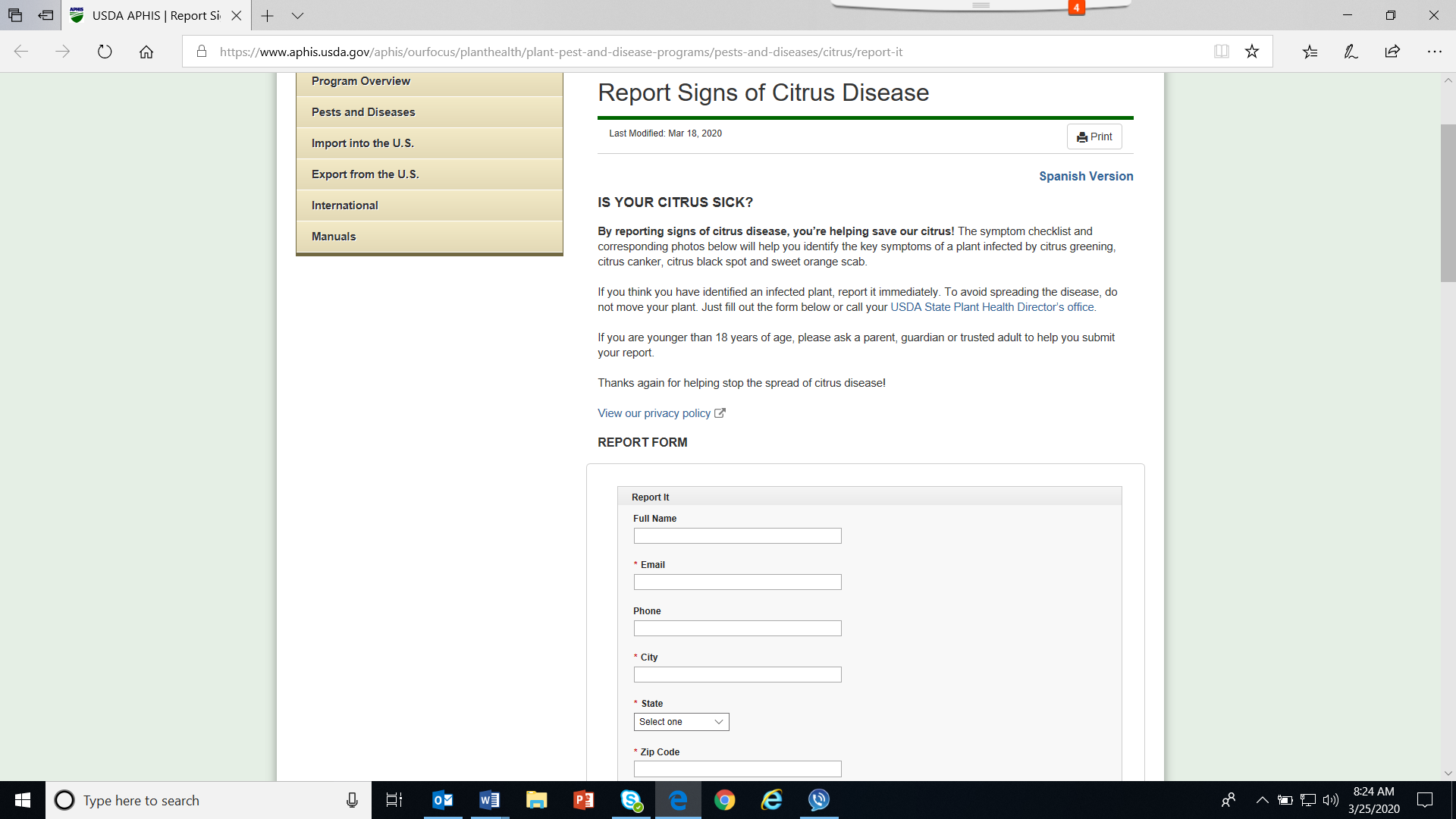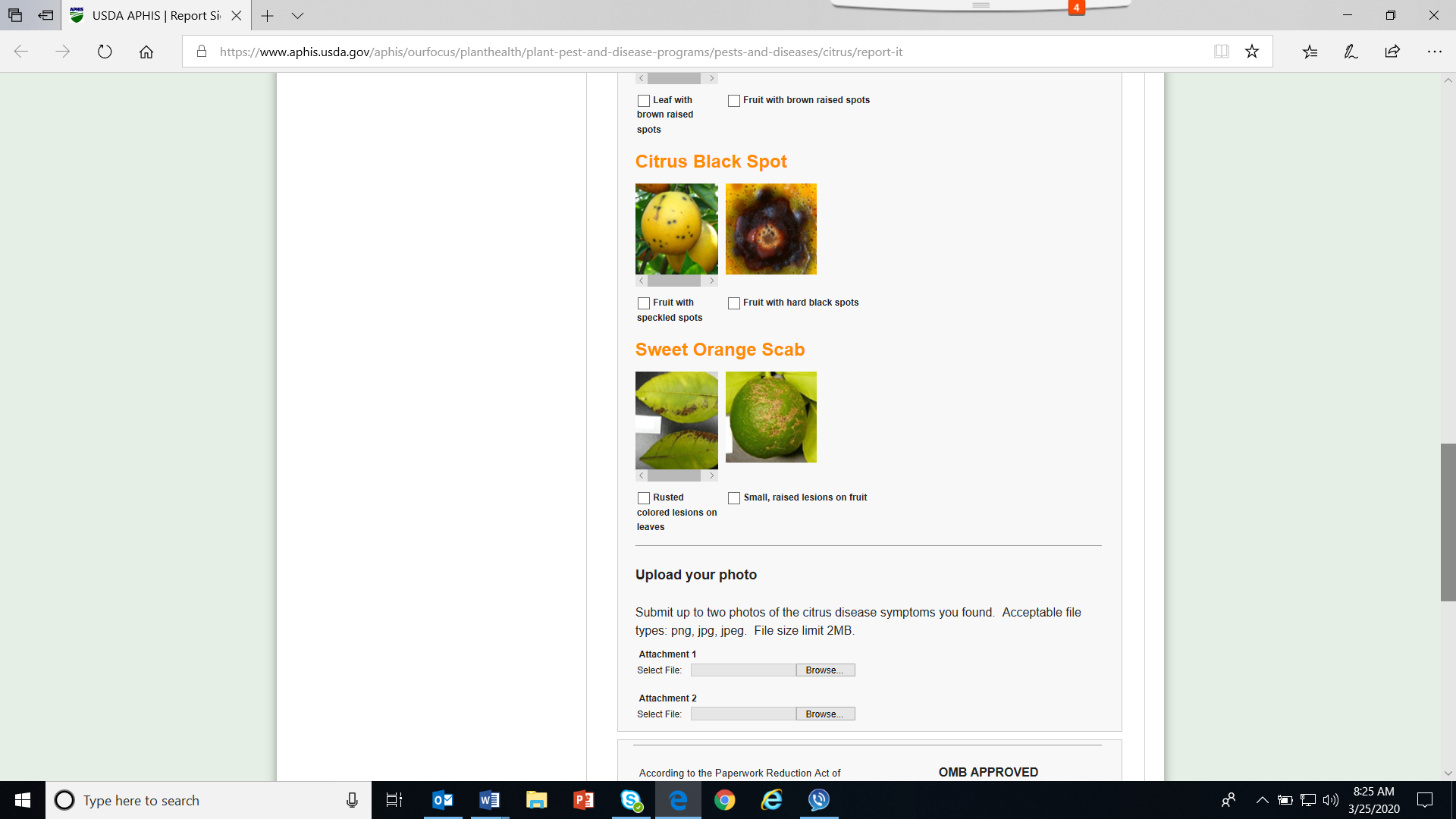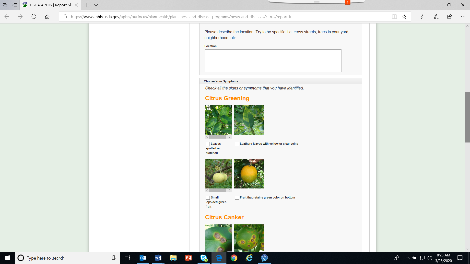 Pest Reporting Form 1: Citrus Disease