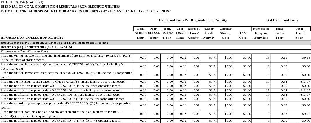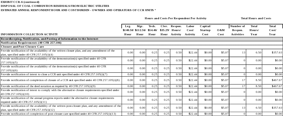 Finally, EPA assumes that none of the owners and operators of the CCR units will prepare a notification verifying that post-closure care has been completed (40 CFR 257.104(e)).