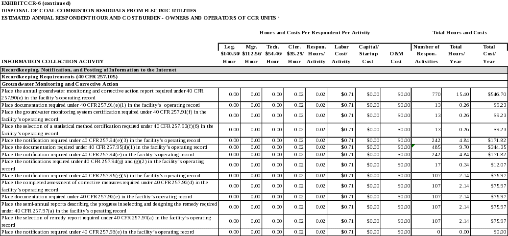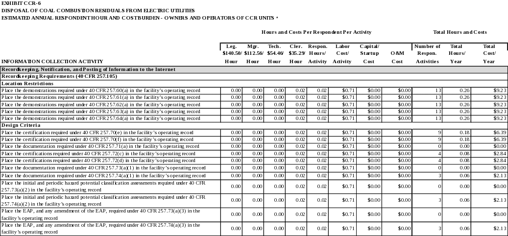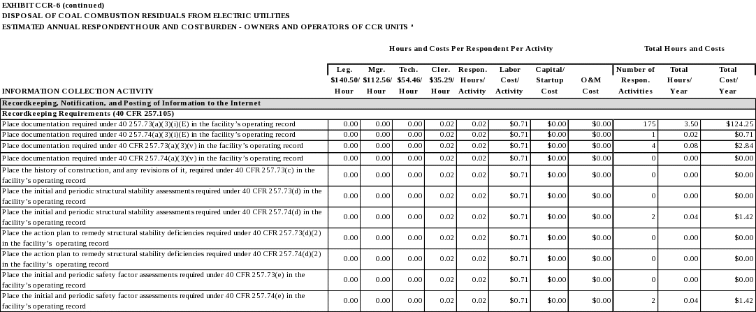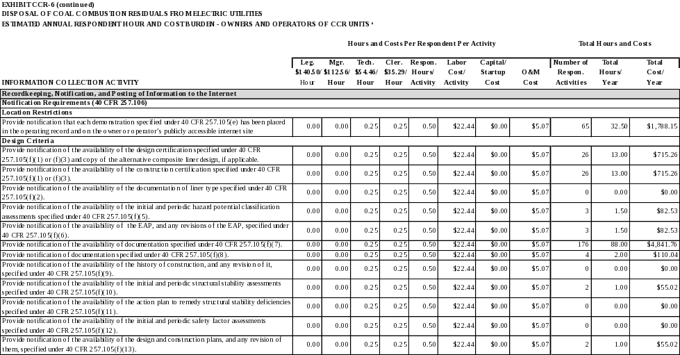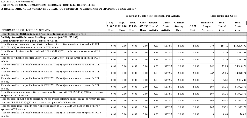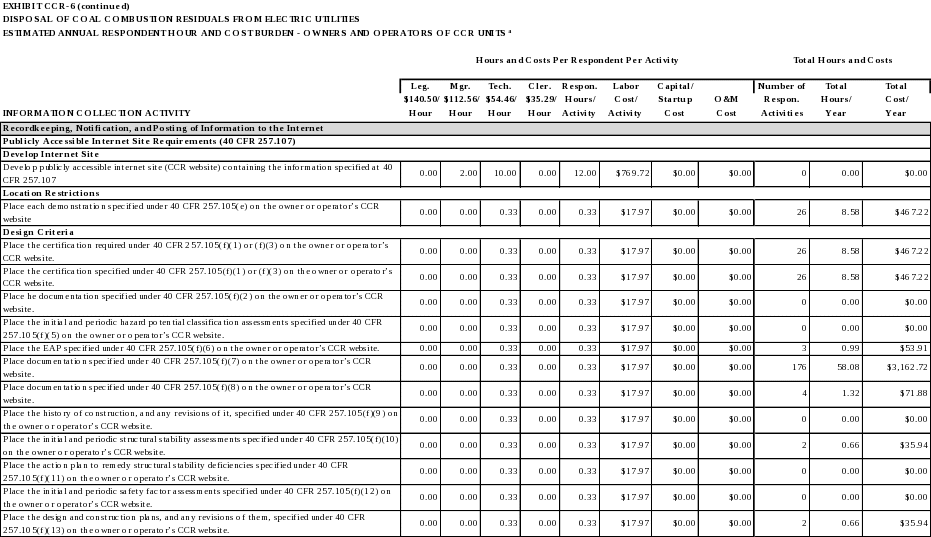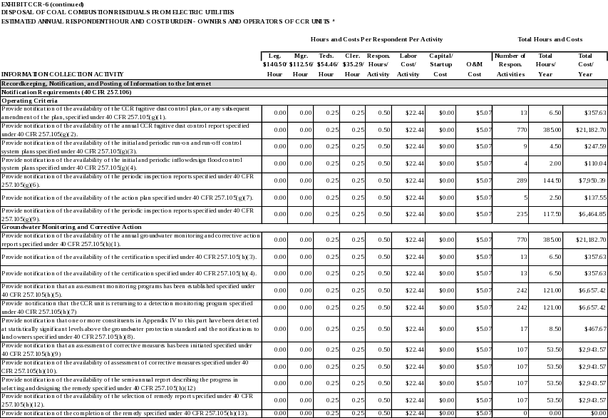 (h) Recordkeeping, Notification, and Posting of Information to the Internet - Owners and Operators of CCR Units (Exhibit CCR-6)