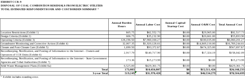 As shown in Exhibit 9, EPA estimates the annual respondent burden to be 173,083 hours and $15,511426.