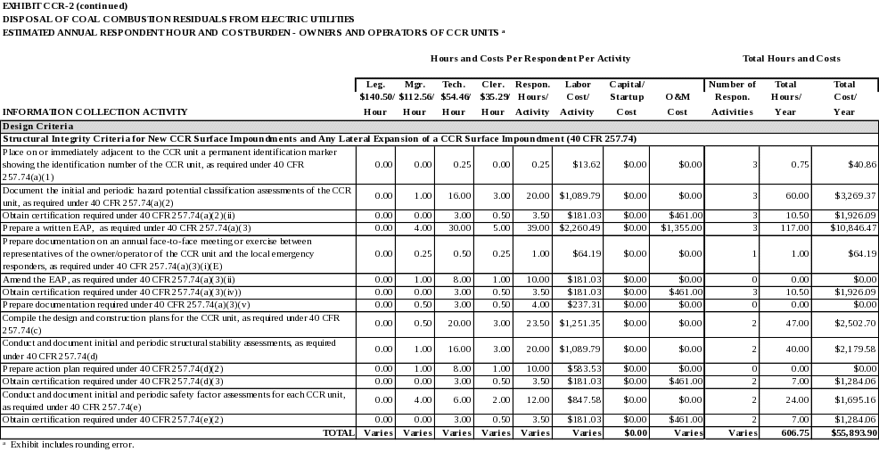 23 40 CFR 257.74(f)(2) indicates that the frequency for conducting periodic assessments is every five years. The date of completing the initial assessment is the basis for establishing the deadline to complete the first subsequent assessment. As a result, only the initial assessment will be conducted during the three-year period covered by this ICR.