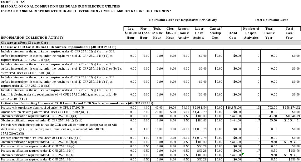 (g) Closure and Post-Closure Care (Exhibit CCR-5)