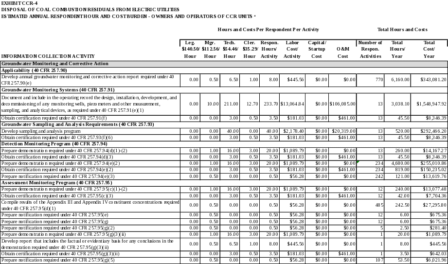(f) Groundwater Monitoring and Corrective Action (Exhibit CCR-4)