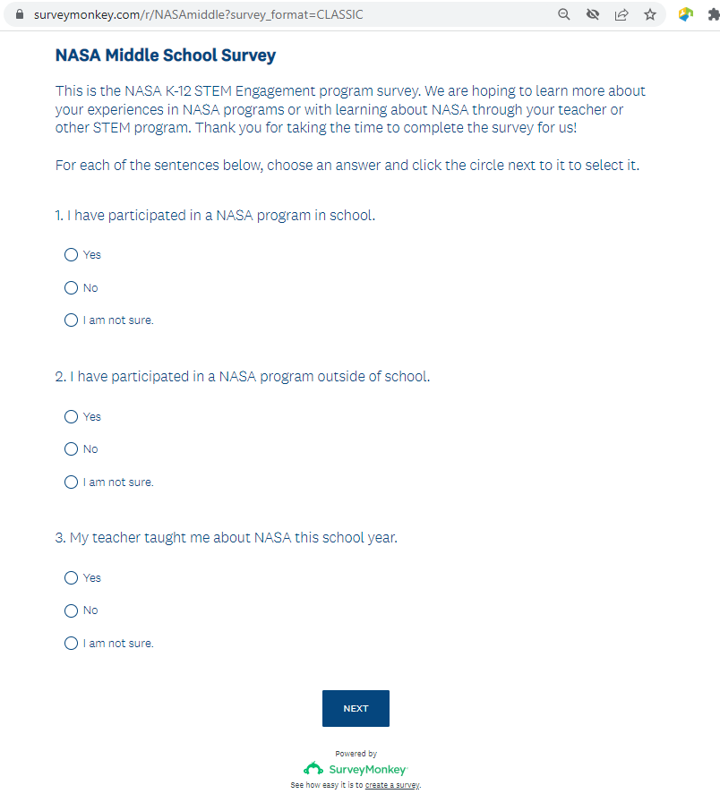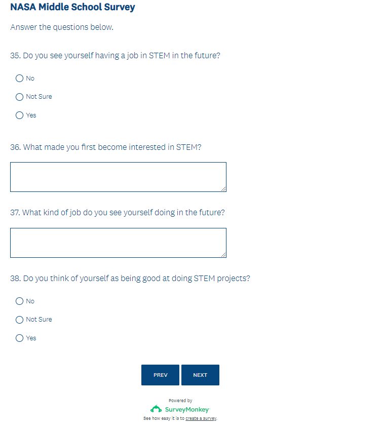 NASA Middle School Survey Screenshots (5-20-22)