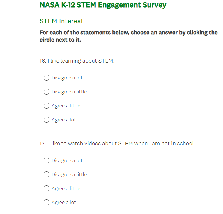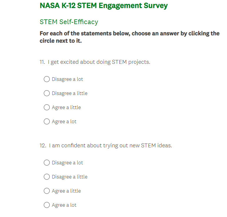 NASA K-12 Student Outcome Assessment Survey Screenshots
