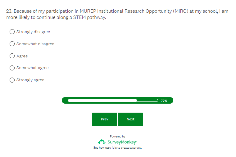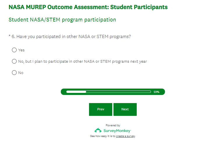 NASA MUREP Outcome Assessment - Student Survey Screenshots