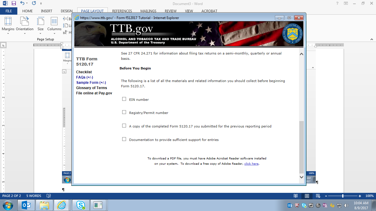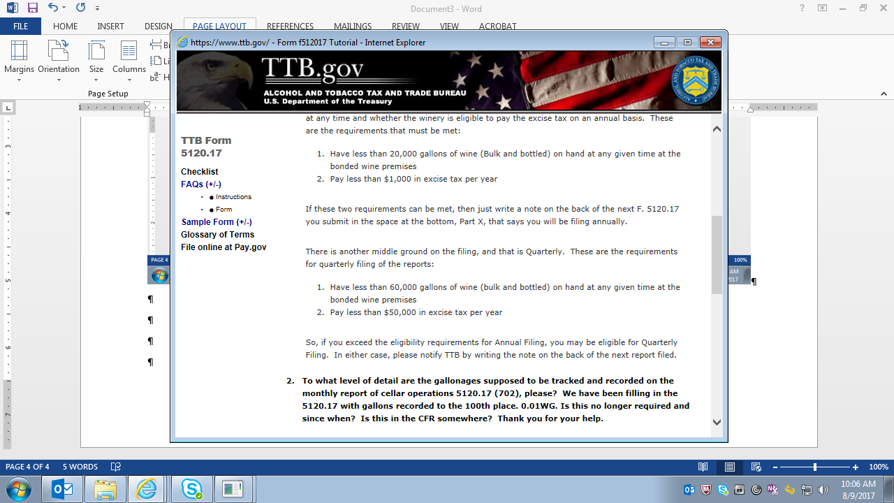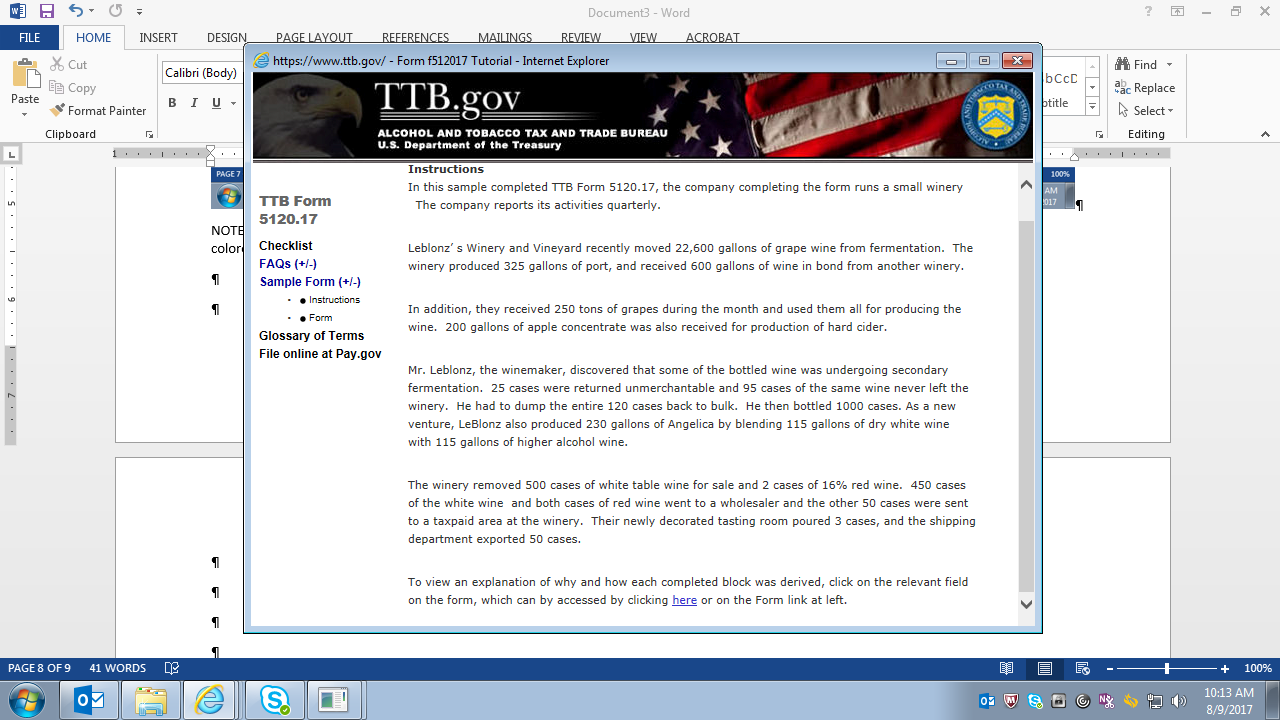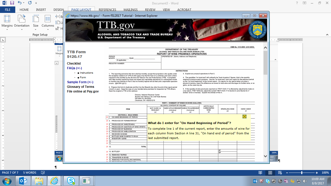 Tutorial (Instructions) for TTB F 5120.17, Report of Wine Premises Operations